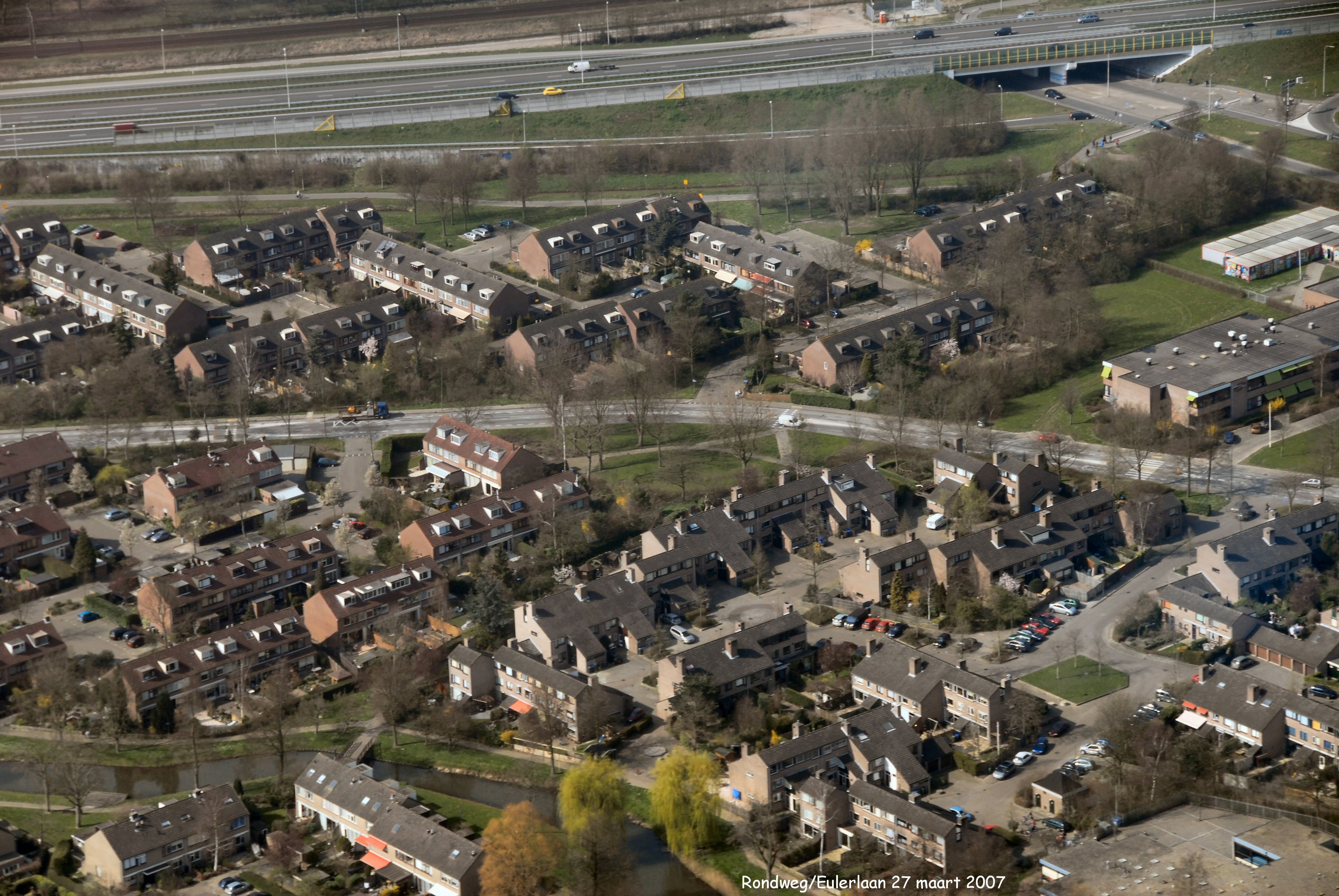 Boven is de Rondweg N3 met rechtsboven de aansluiting van de Copernicusweg. Midden links naar rechts is de Eulerlaan in Sterrenburg 2.