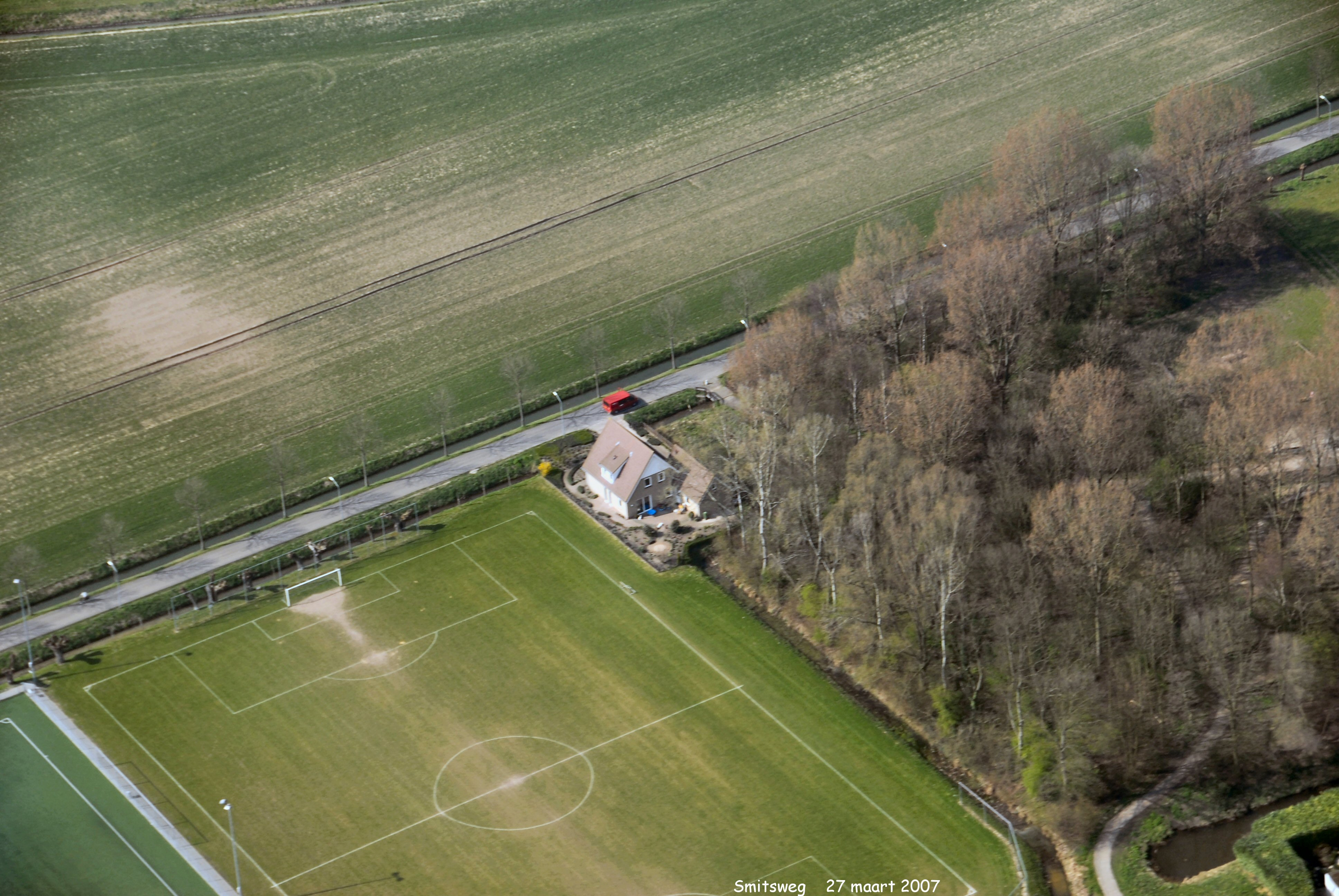 Smitsweg met voetbalveld van V.V. Wieldrecht. Links boven is nu Wilgenwende.