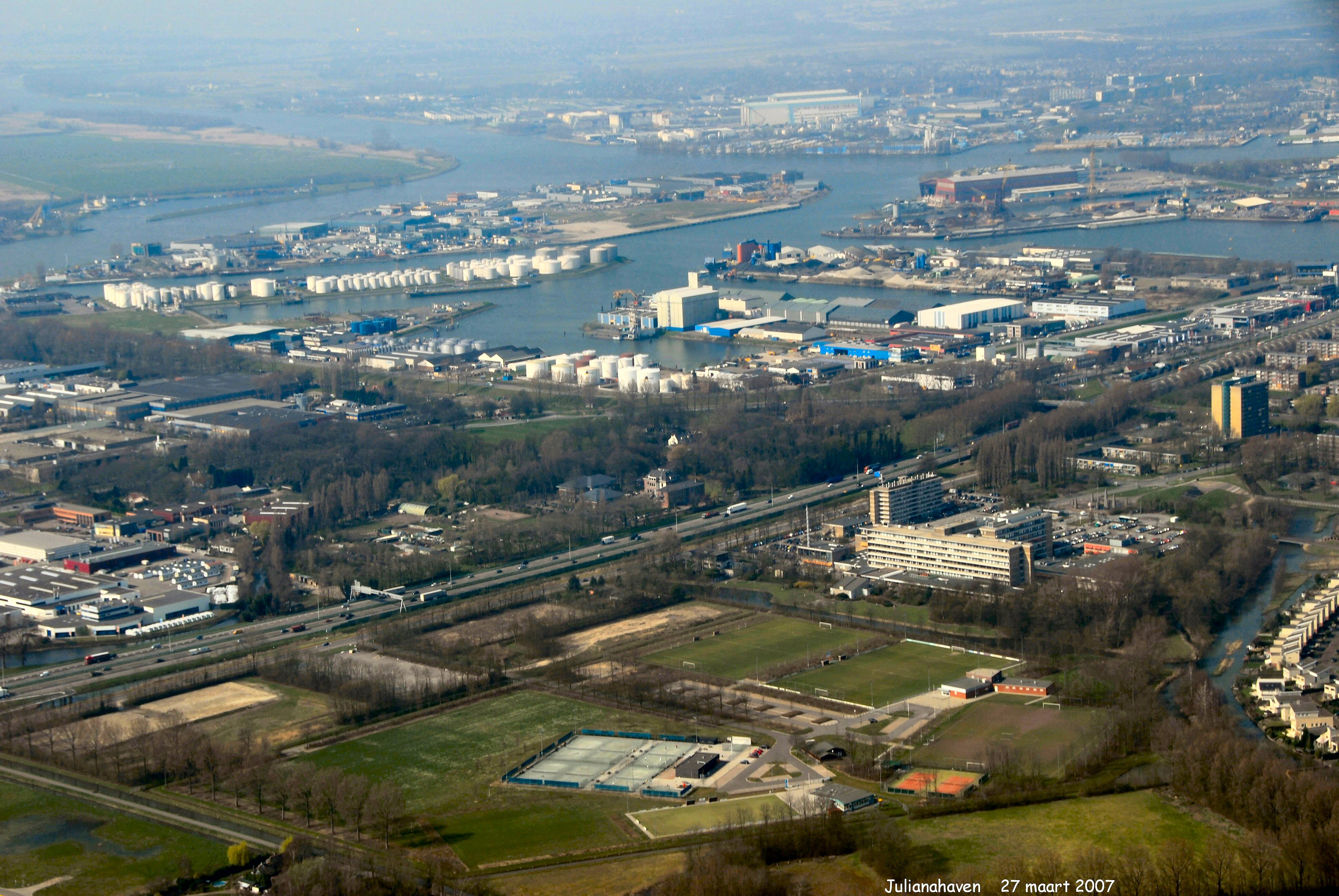 Rijksstraatweg met de Julianahaven in het midden, geheel boven is Zwijndrecht.