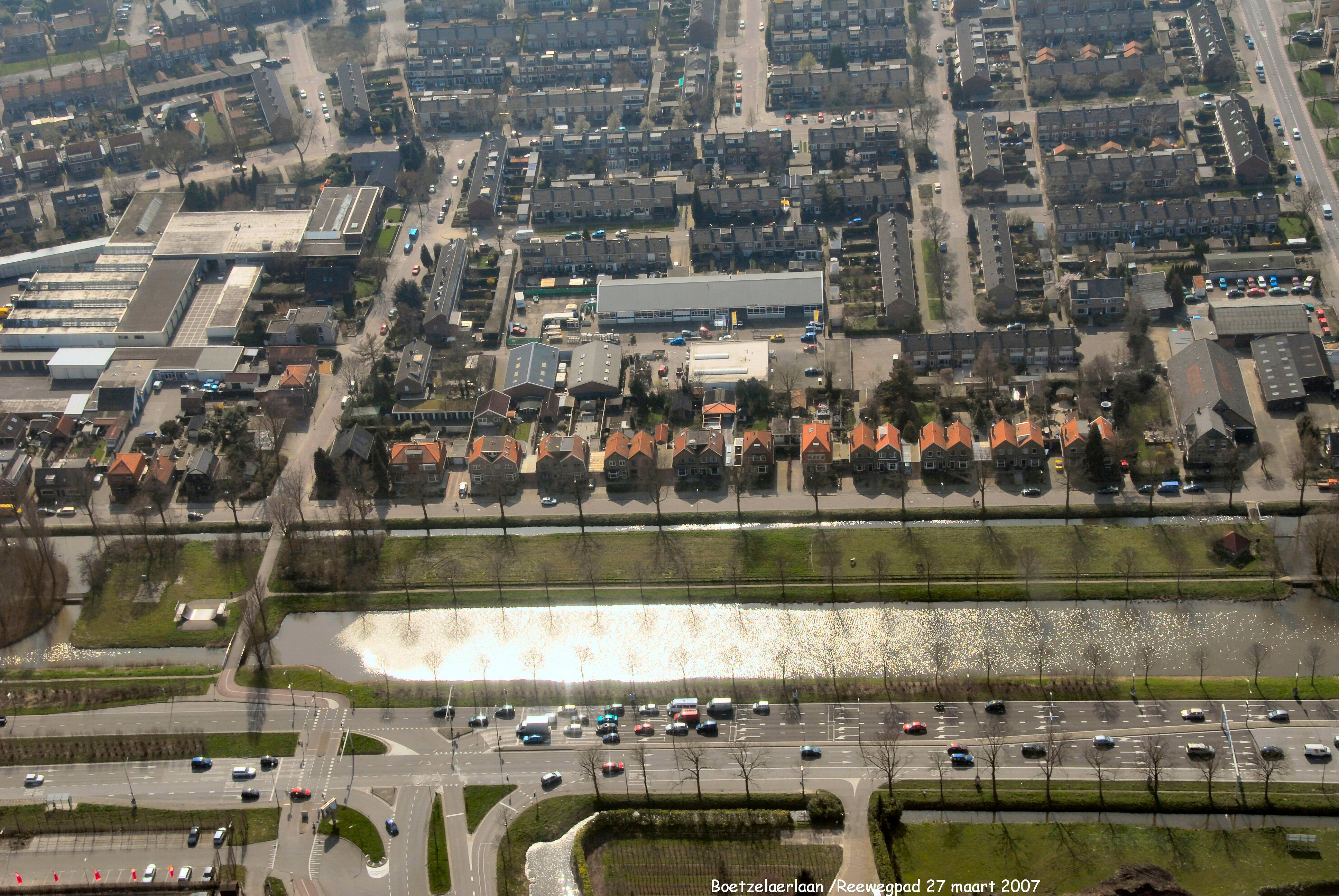 Onder is de Provincialeweg met evenwijdig er boven de Haaswijkweg West Rechts boven de Noordhoevelaan met links het Reeweg pad