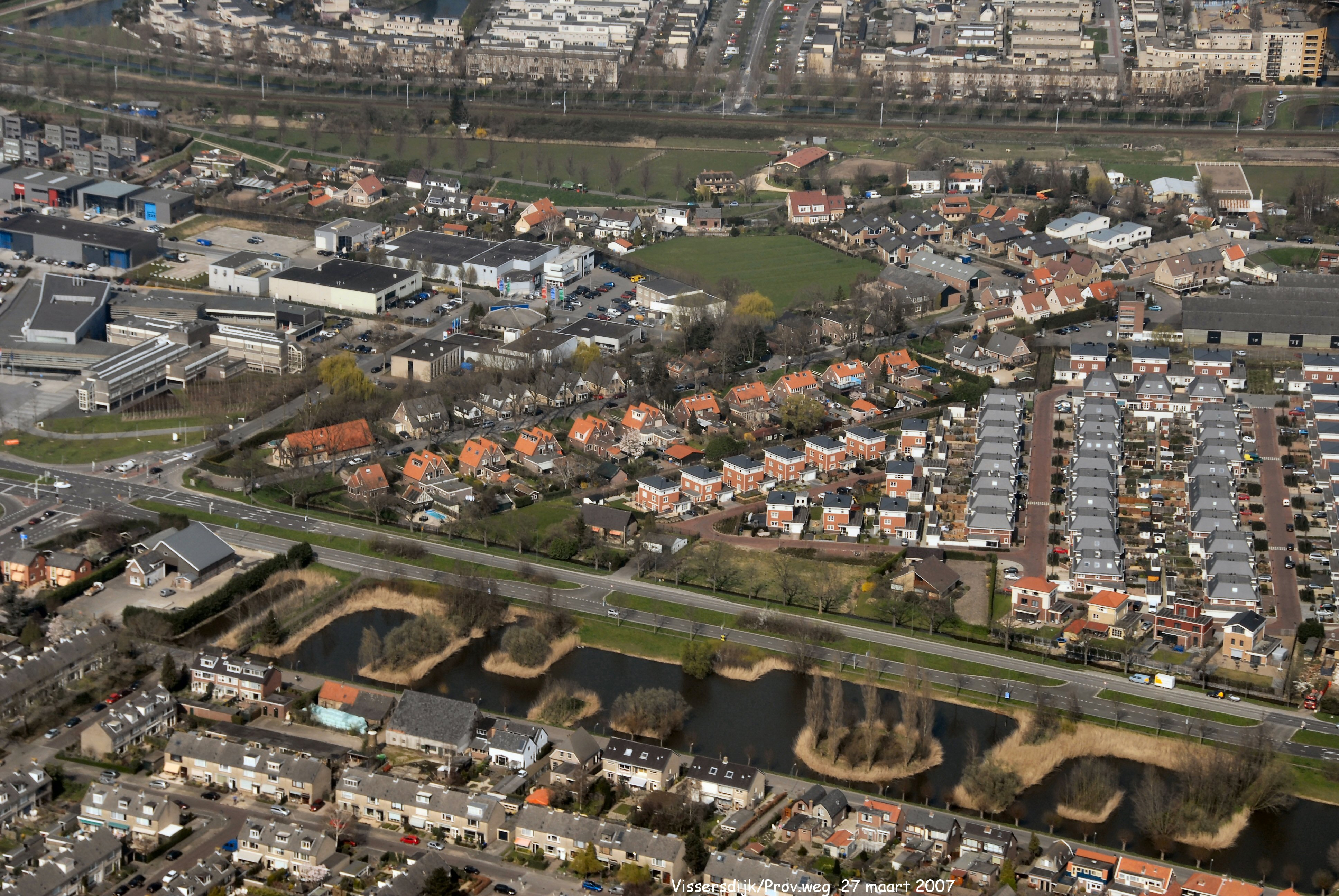 Onder is de Haaswijkweg Oost met de Provinciale weg er boven, in het midden de Vissersdijk , en geheel boven Stadspolder met spoorlijn Dordrecht-Sliedrecht. Midden rechts is de Visserstuin gezien in Noord/Westelijke richting.
