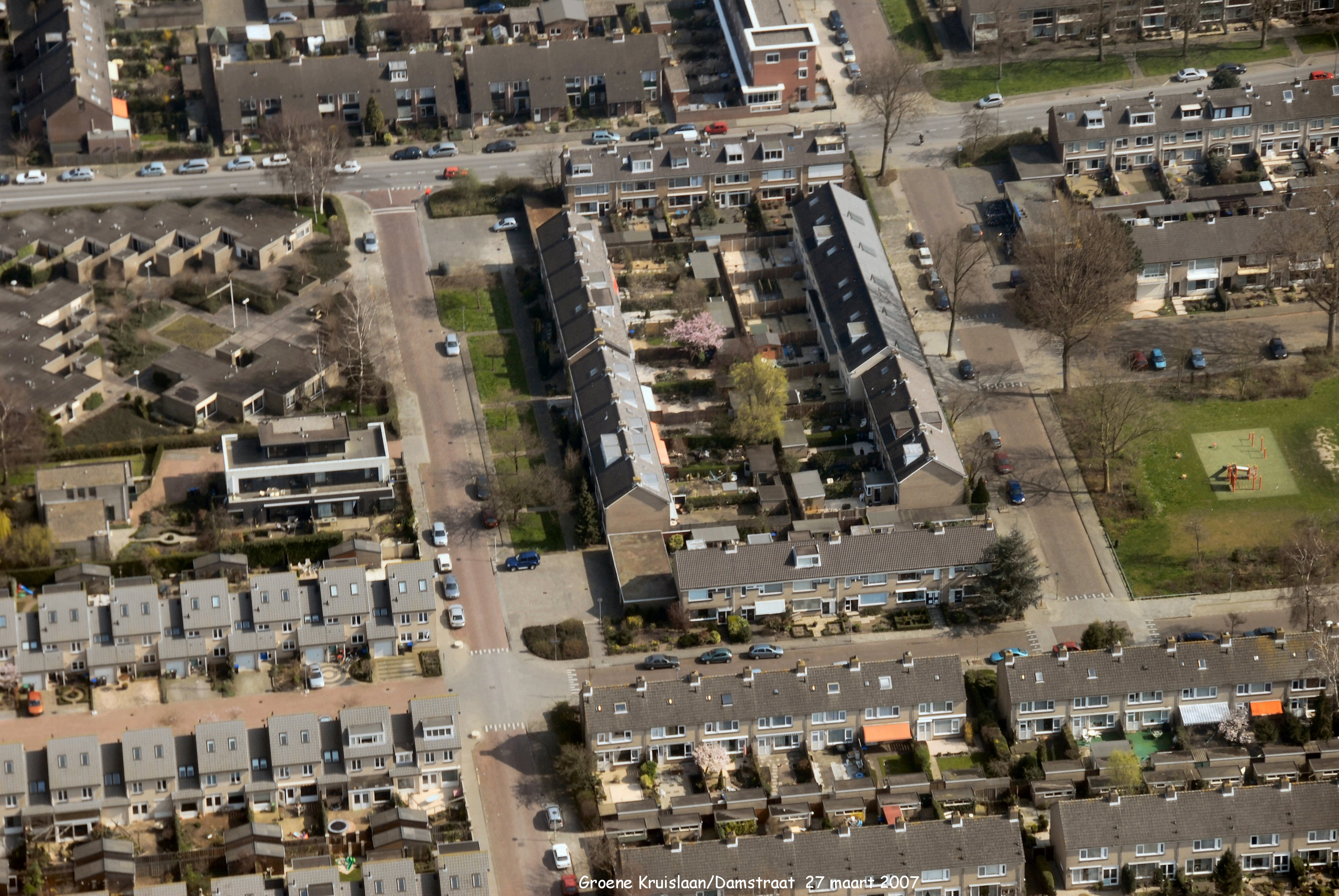 Onder is de Koningstraat met boven de Groene Kruislaan, midden links Crafthoff. Rechts van boven naar onder is de Damstraat.