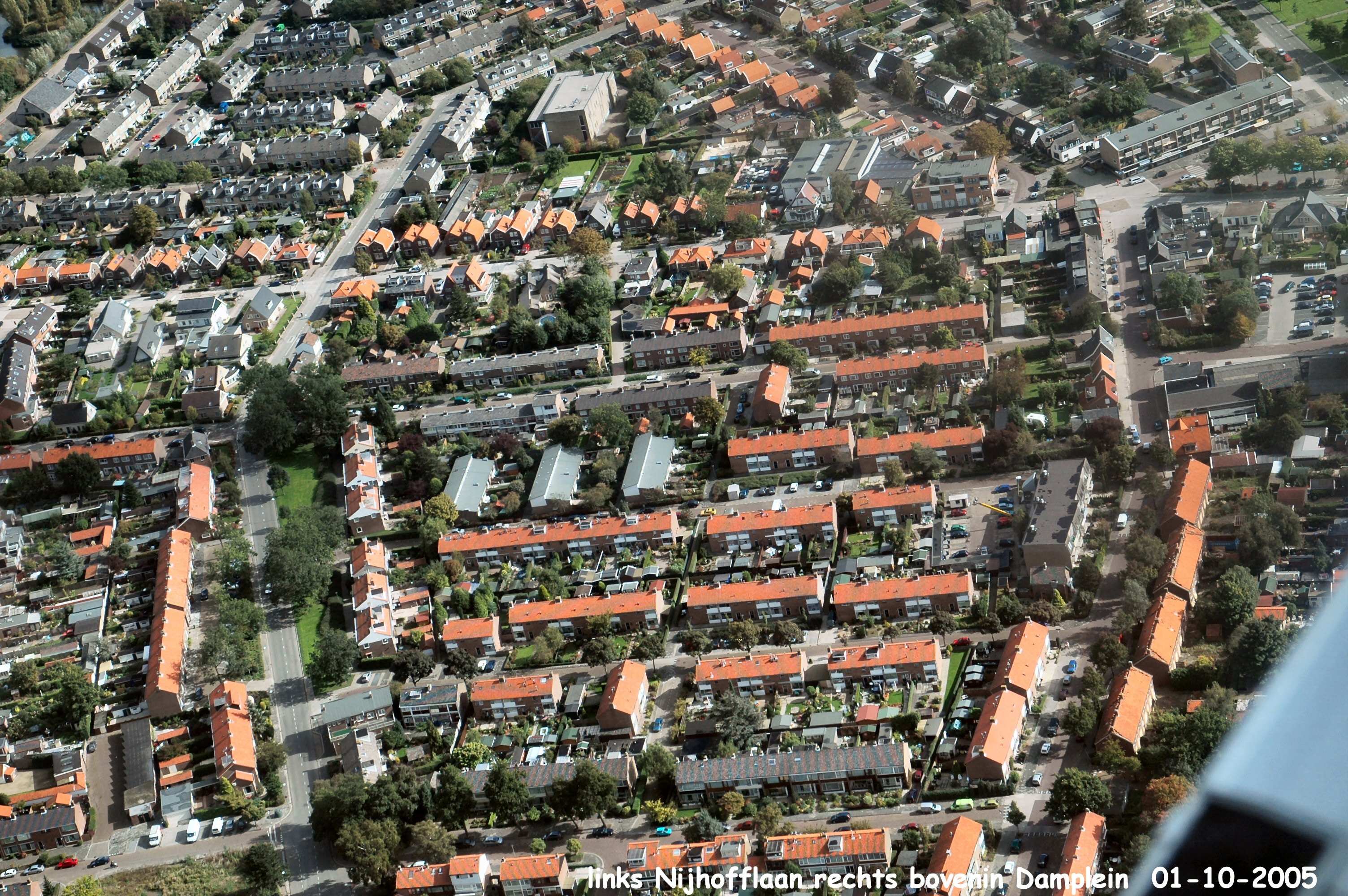 Midden boven is de kromme Zandweg. Rechts boven is het Damplein. Links onder naar boven Nijhofflaan. Rechts onder naar boven is de Damstraat.