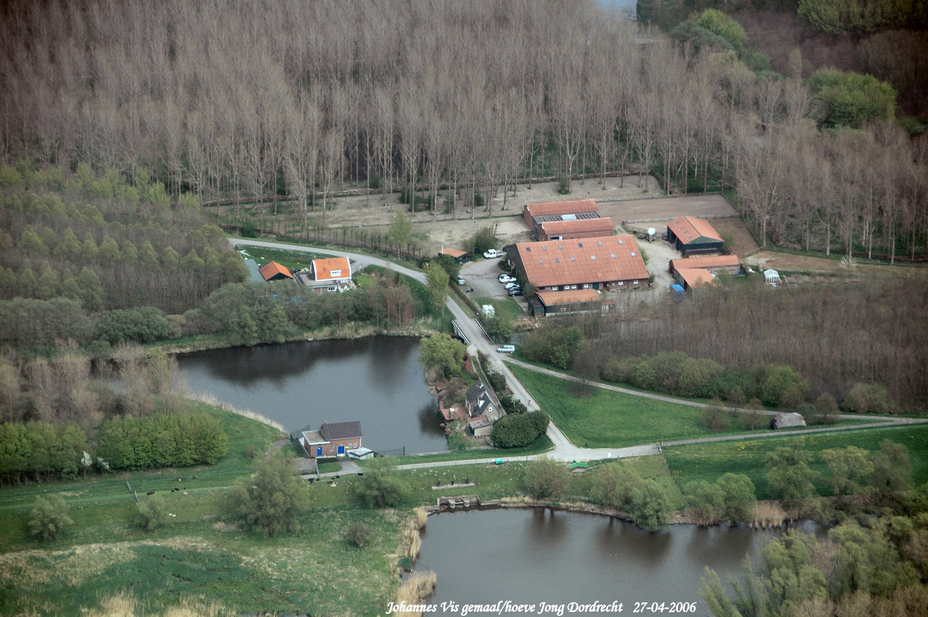 Onder is de Westhaven met achter de Zuidwestdijk het Johannes Vis gemaal. In het midden de hoeve "Jong Dordrecht" van de Natuur en Vogelwacht aan de Noorderelsweg. Op de achtergrond is het Bos de Elzen. gezien in oostelijke richting.