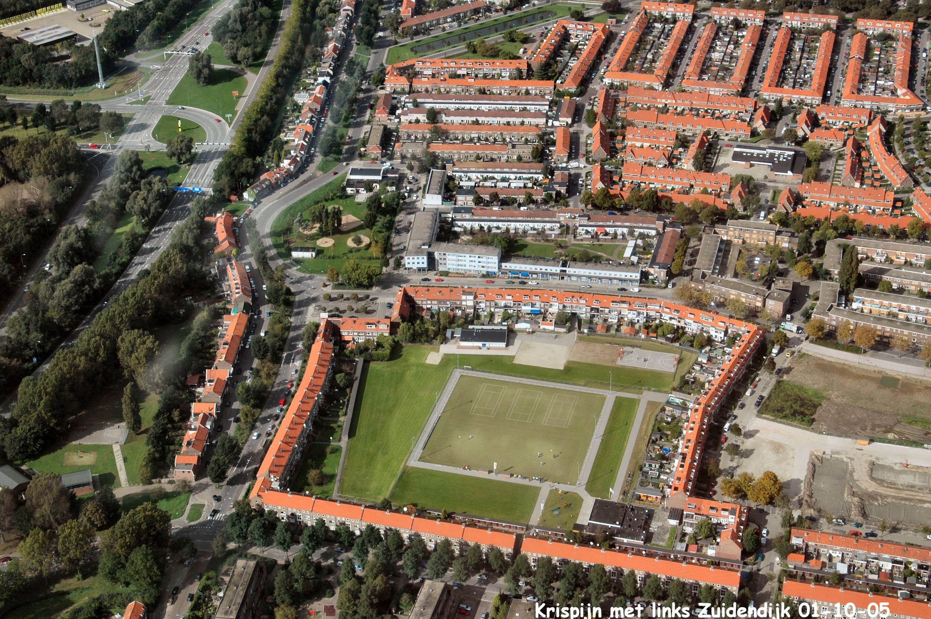 Krispijn met links de Zuidendijk en onder de Patersweg. gezien in Noord/Westelijke richting.