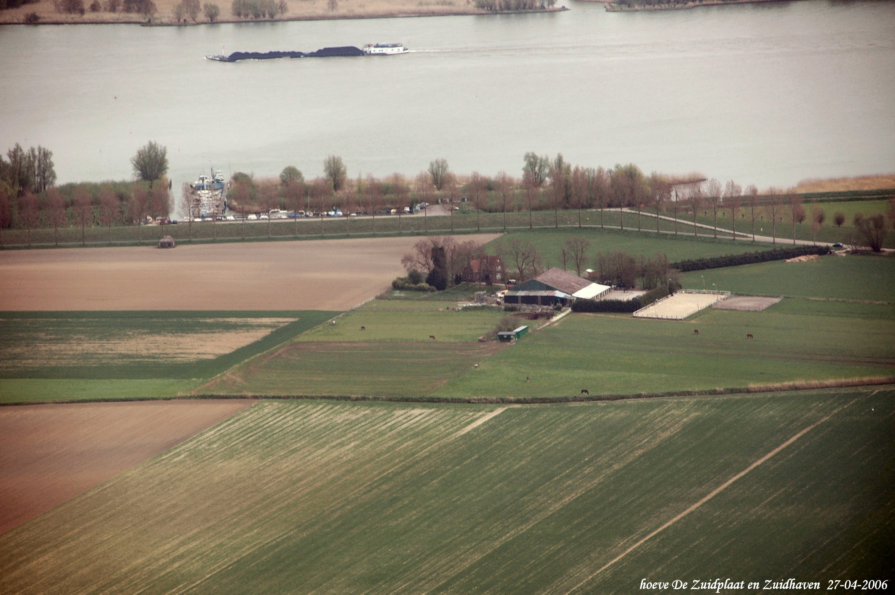 In het midden Hoeve 'De Zuidplaat" aan de Nieuwe Merwedeweg heet nu theetuin "De Griendheuvel, boven is de Nieuwe Merwede met links de Zuidhaven.