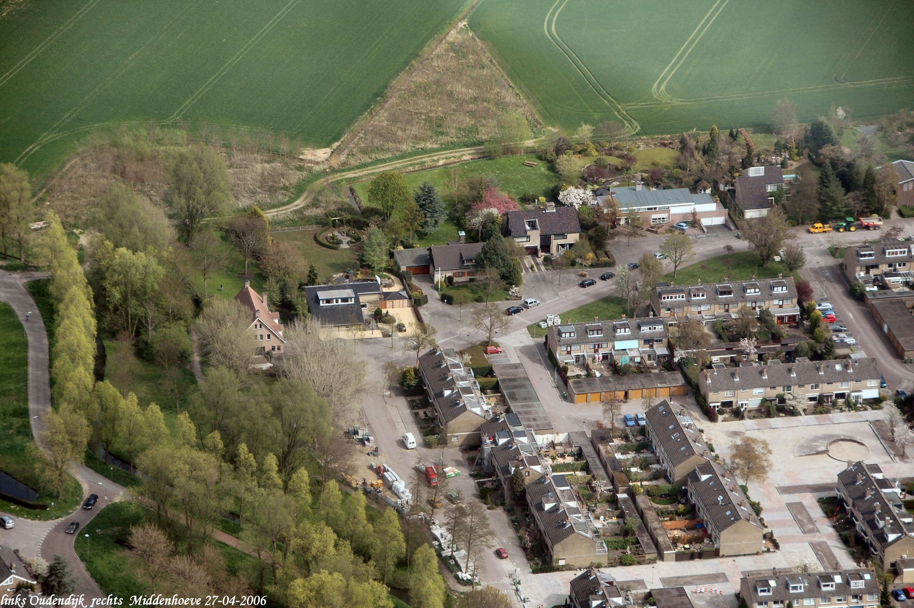 Links de Oudendijk met rechts Middenhoeve gezien in Oostelijke richting.