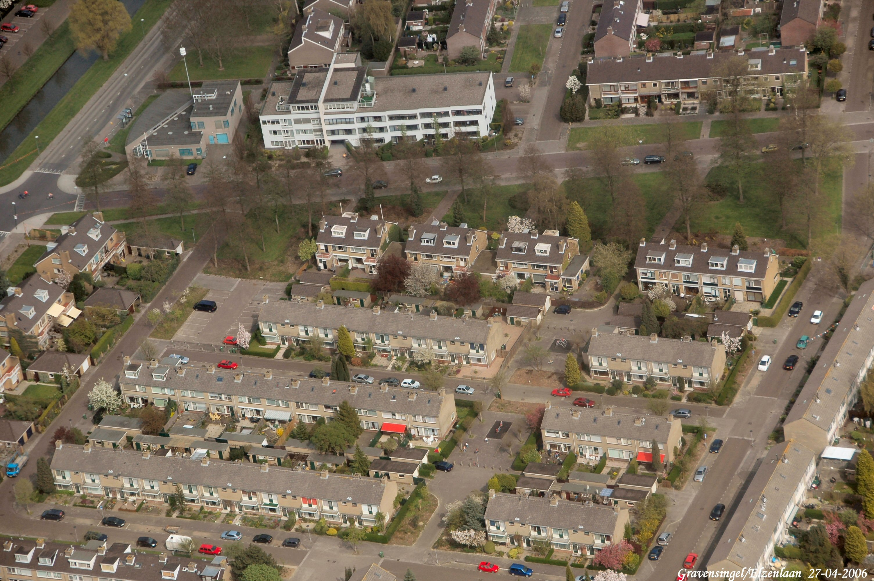 Links boven is de Gravensingel en van links naar rechts is de Elzenlaan. Onder en rechts is de Goudenregenstraat.