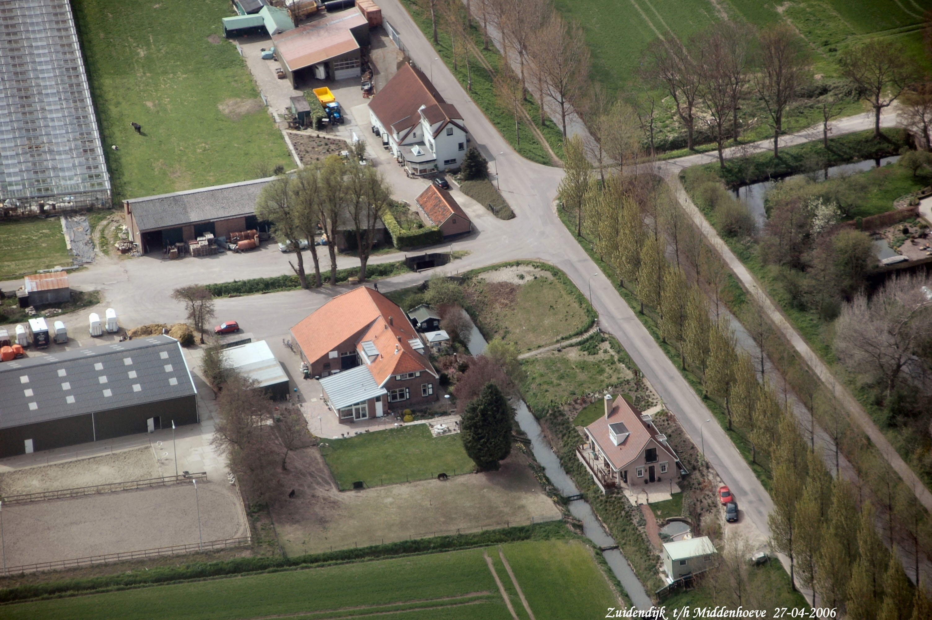 Zuidendijk met rechts boven het Laantje van Middenhoeve.