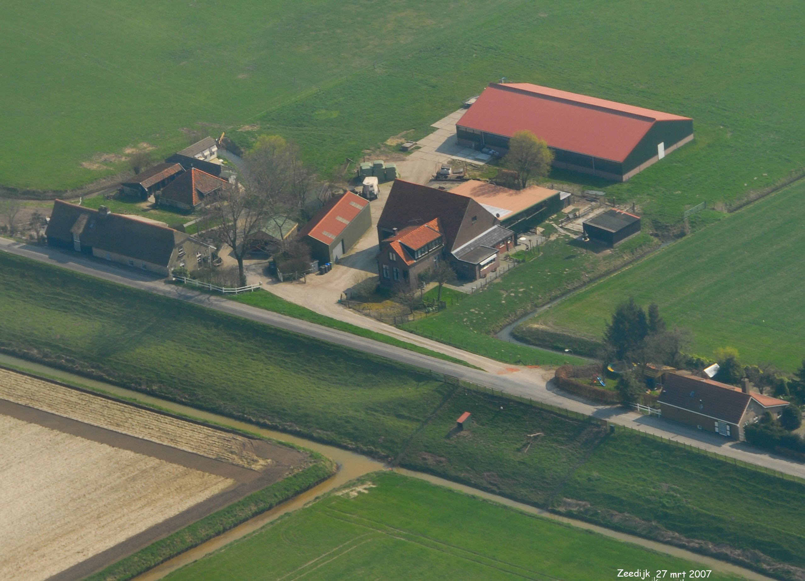 Zeedijk 7-9 en 11. geheel links is "Huize Groenewegen"of Boutjeshuis van ong.1720. De schoorsteen diende vroeger als raaipunt. gezien in Zuid/Oostelijke richting.
