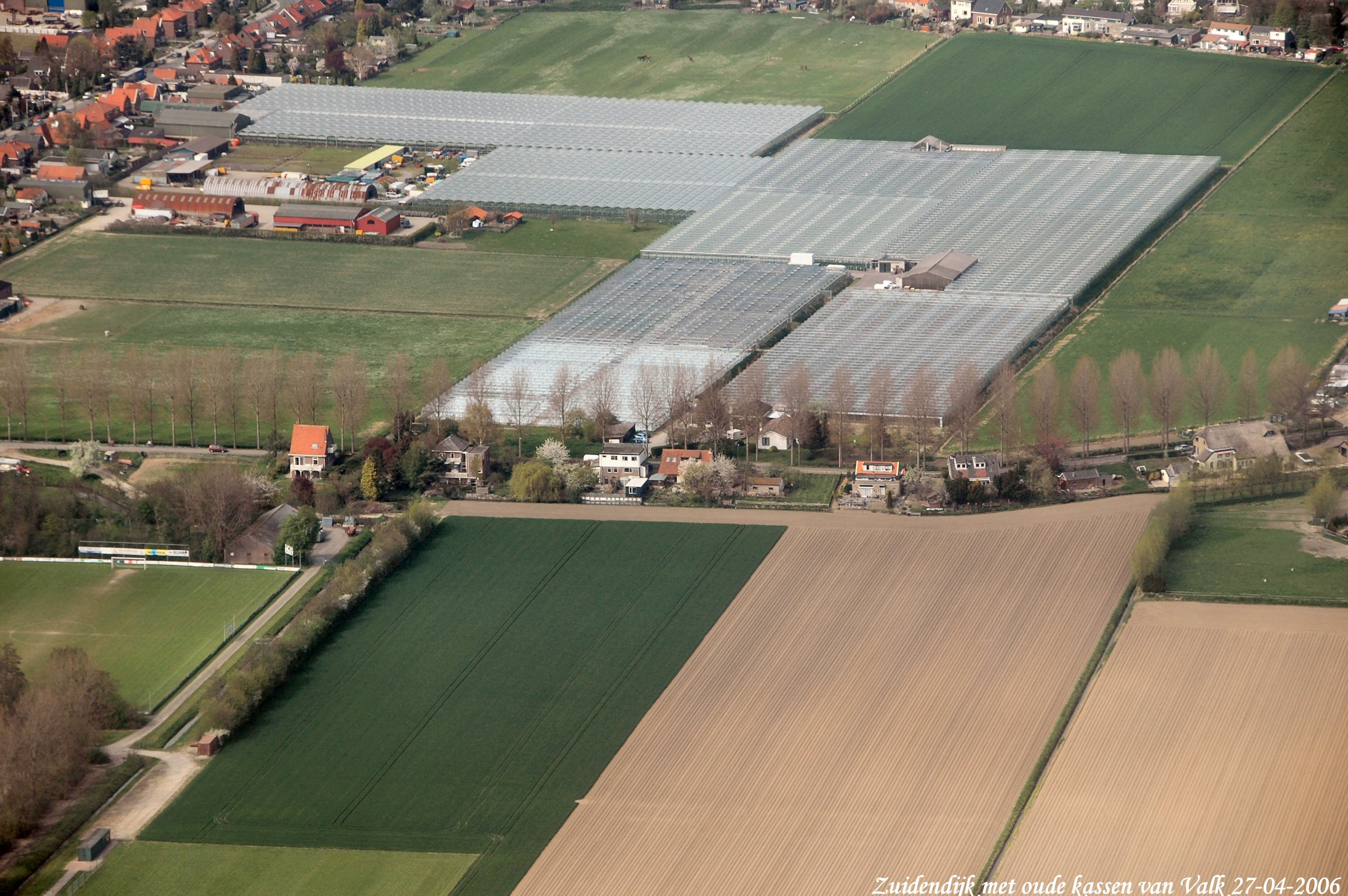 In het midden is de Zuidendijk en rechts boven Oudendijk. Links boven de Stevensweg. gezien in Noord/Westelijke richting.