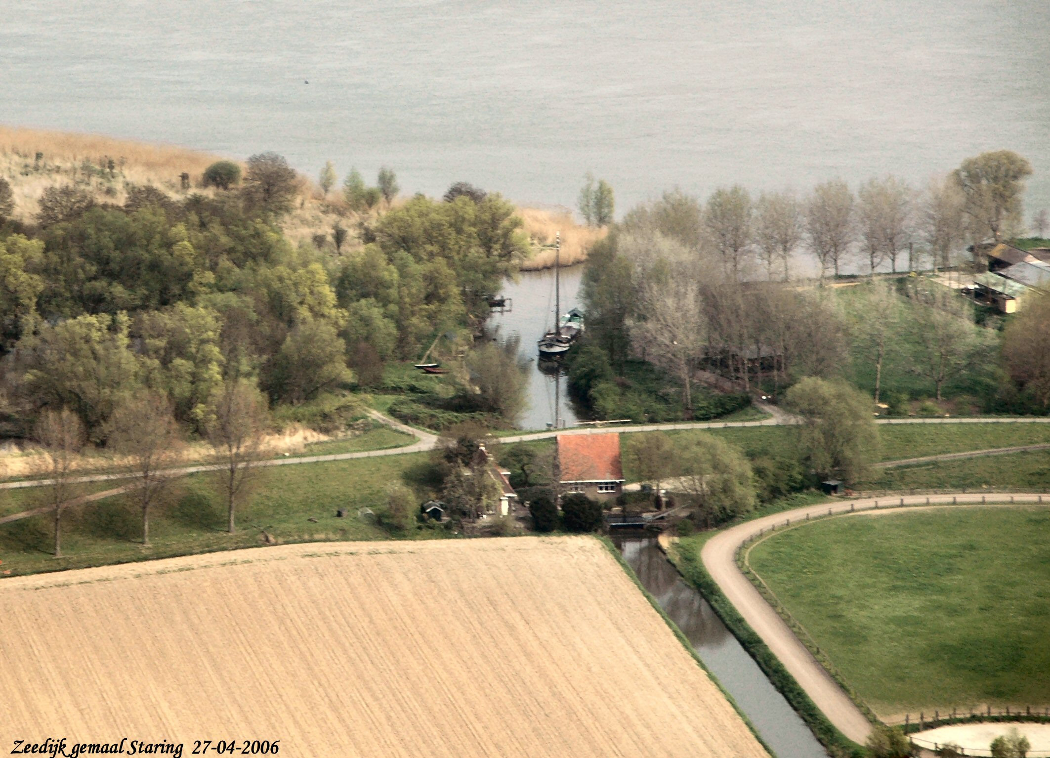 Zeedijk nabij Kop van Land met gemaal Staring, boven is de Nieuwe Merwede. gezien in Oostelijke richting.