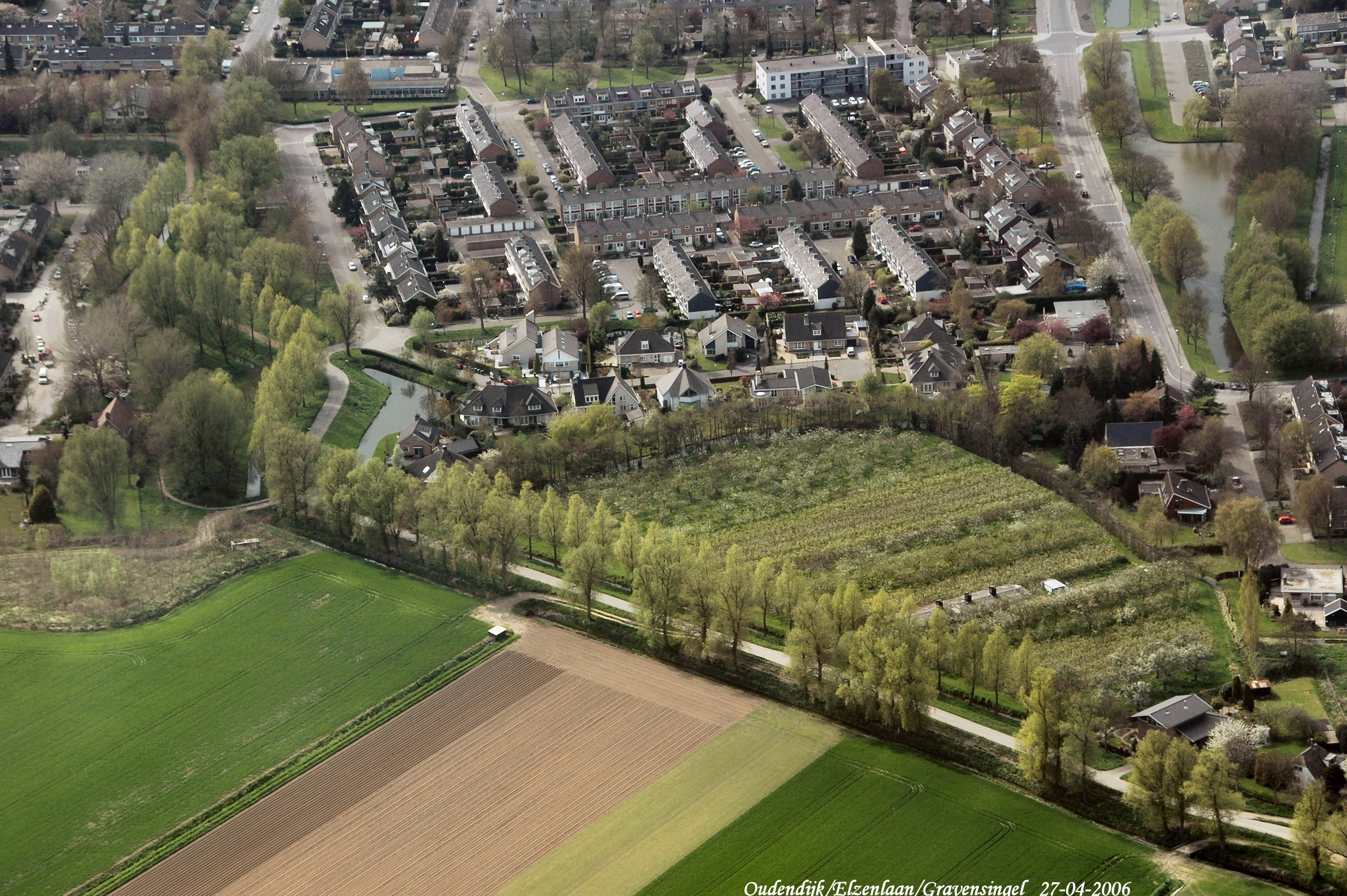 Onder is de Oudendijk, Rechts boven is de Gravensingel. Boven is de Elzenlaan met midden links nog een stukje van Middenhoeve. gezien in Noord/Westelijke richting.