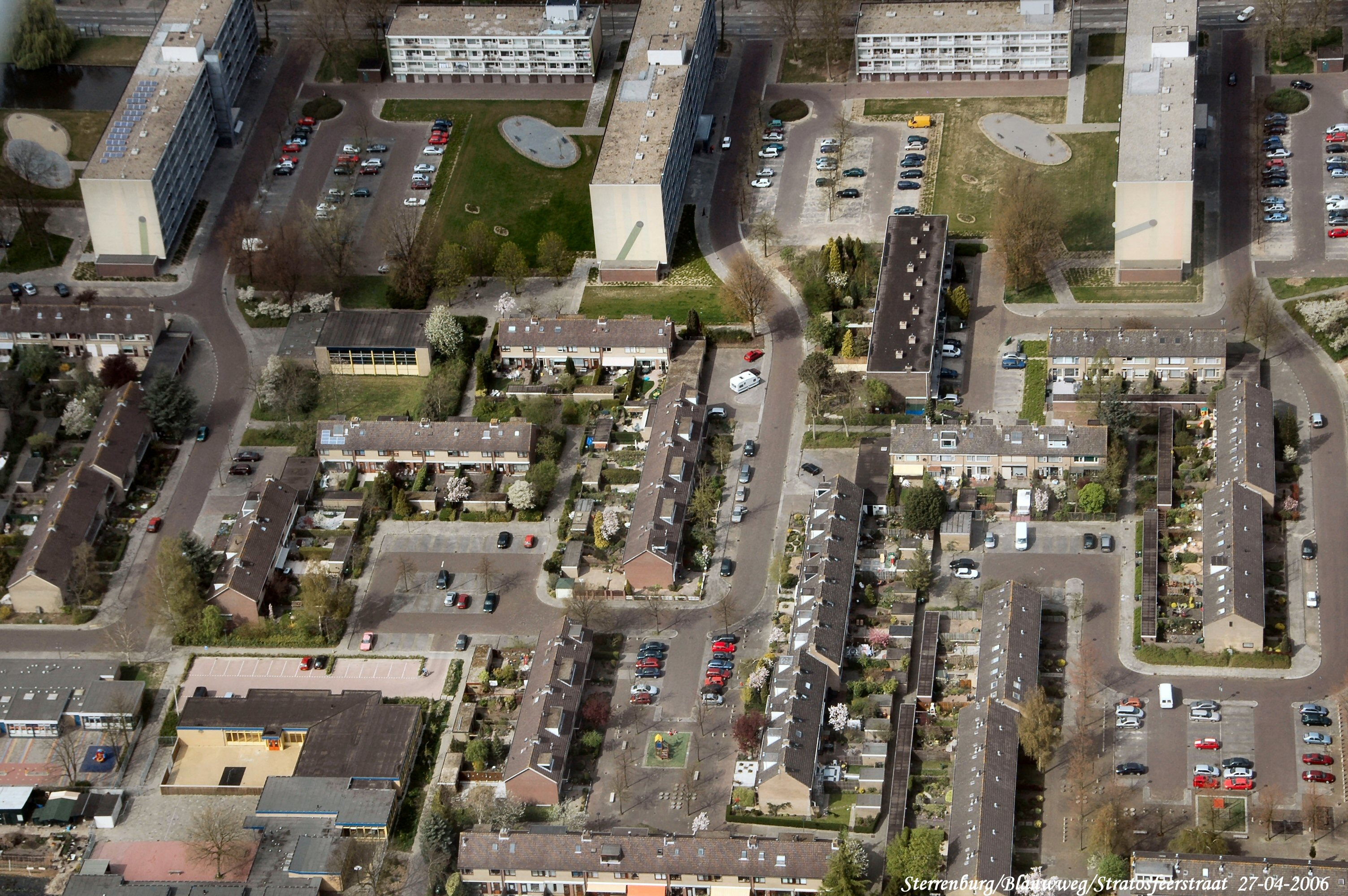 Sterrenburg 2 met links de Atmosfeerstraat en rechts de Heelalstraat. In het midden de Stratosfeerstraat gezien in Noordelijke richting.