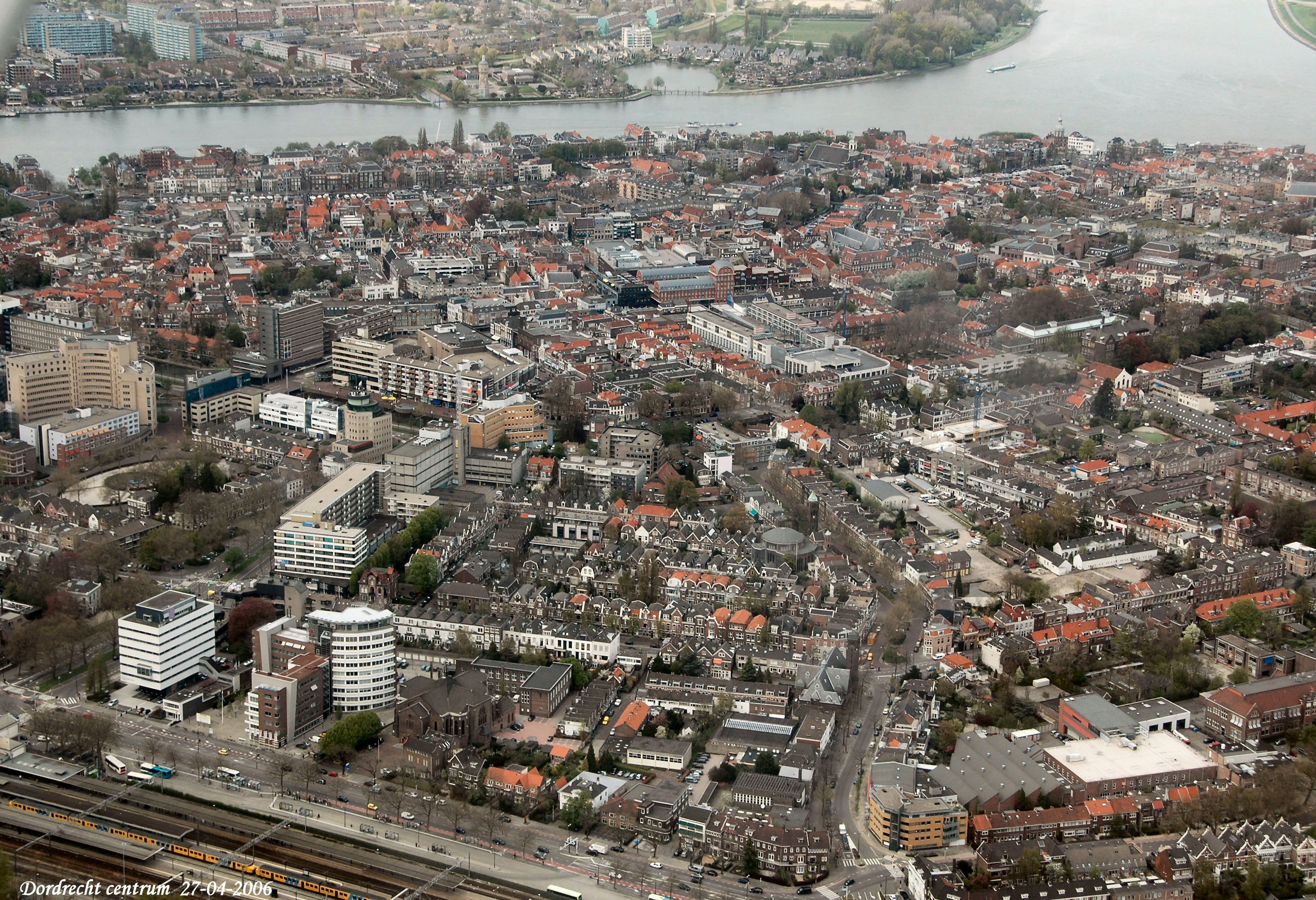 Dordrecht centrum gezien in Noord/Westelijke richting.