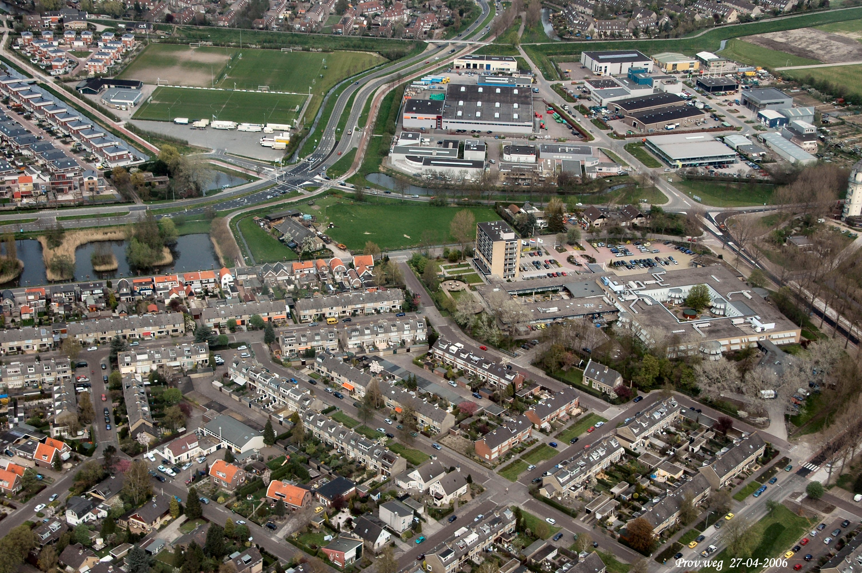 Midden boven naar onder is de Recklinghausenweg met bovenin de Stadspolder. Links boven naar rechts is de Noordendijk. Midden links naar rechts is de Haaswijkweg Oost.Rechts de watertoren van Dubbeldam. gezien in Noord/Westelijke richting.