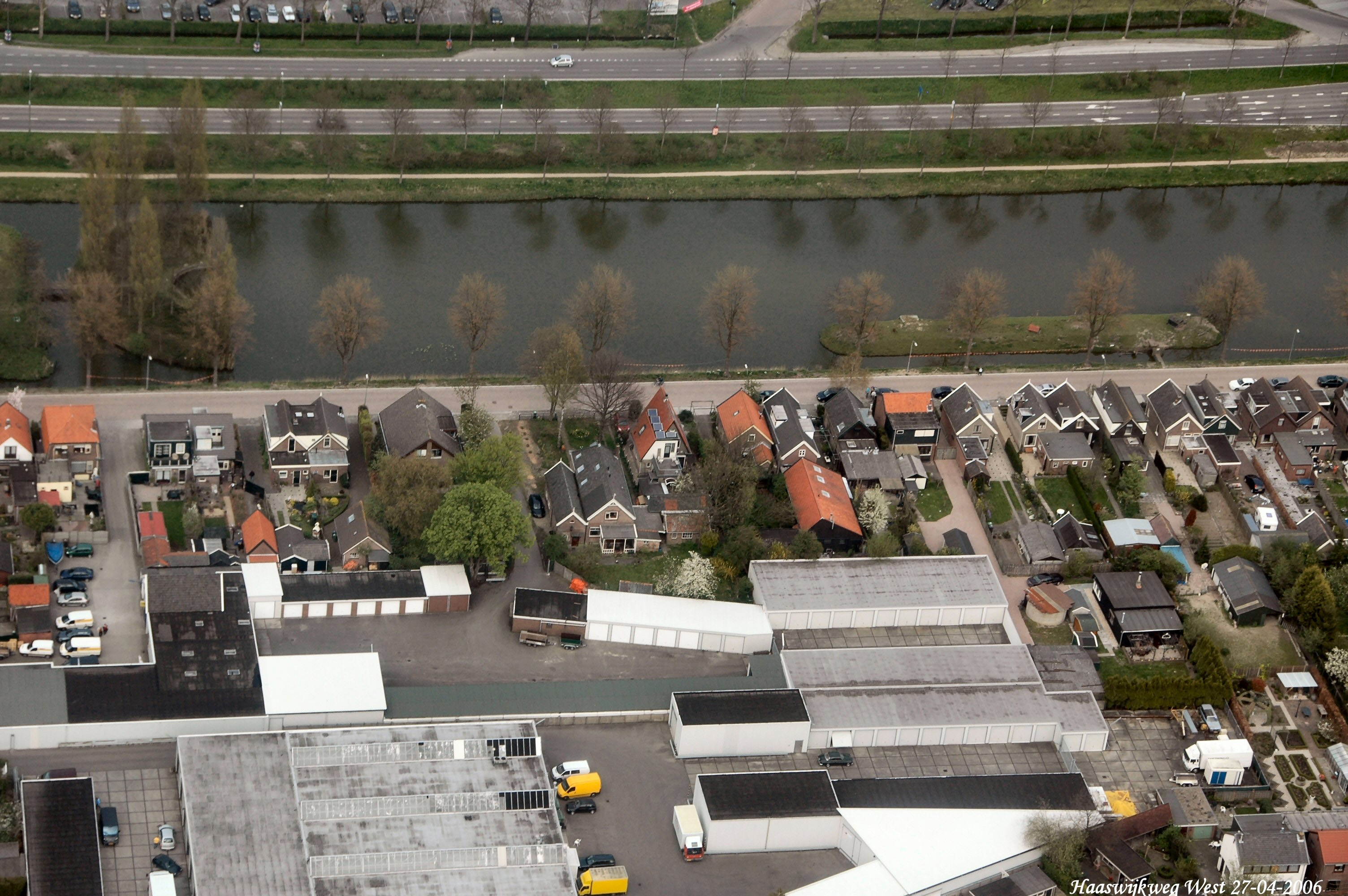 Geheel boven is de provincialeweg met in het midden de Haaswijkweg West. onder de voormalige bakkerij van Bijl. gezien in Noordelijke richting.
