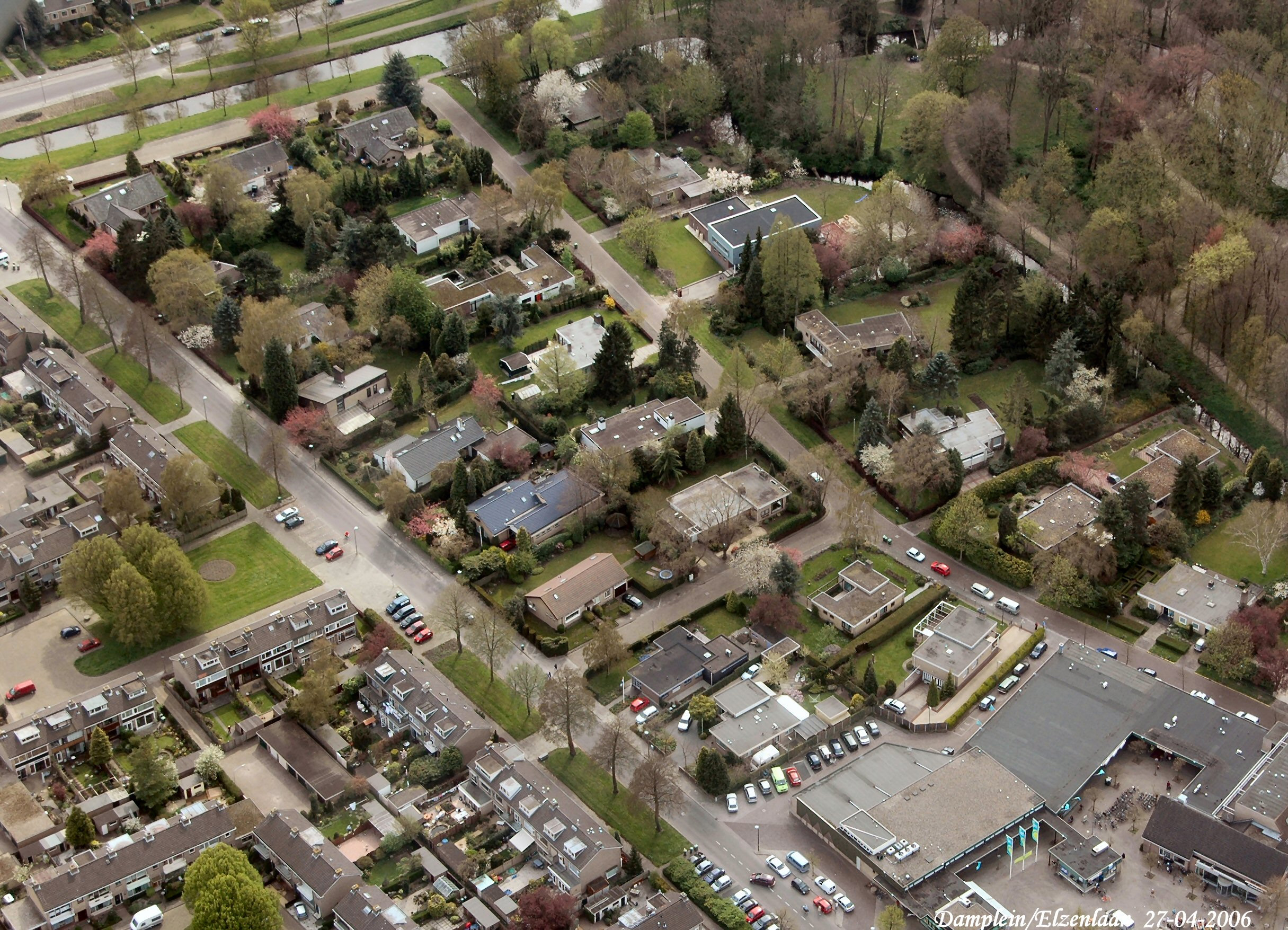 Rechts onder is het Damplein. Midden onder naar boven is de Elzenlaan. Links boven is de Gravensingel. Rechts boven is het Park Dubbelsteyn. gezien in Zuid/Westelijke richting.