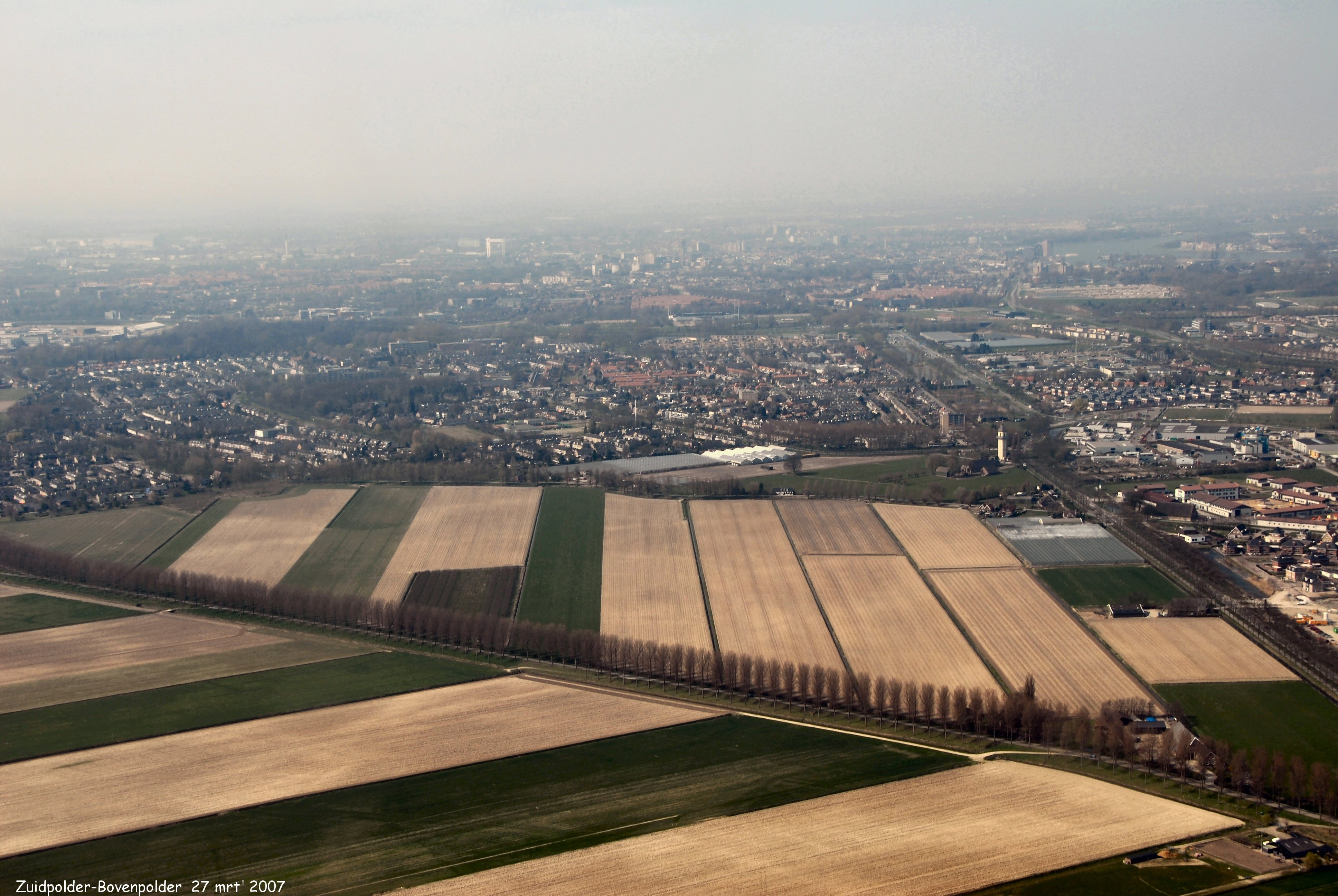 Onder is de Bovenpolder met de Zuidpolder er boven. Midden rechts is Stichting De Hoop aan de Provincialeweg. In het midden is Dubbeldam met Dordrecht er achter. gezien in Westelijke richting.