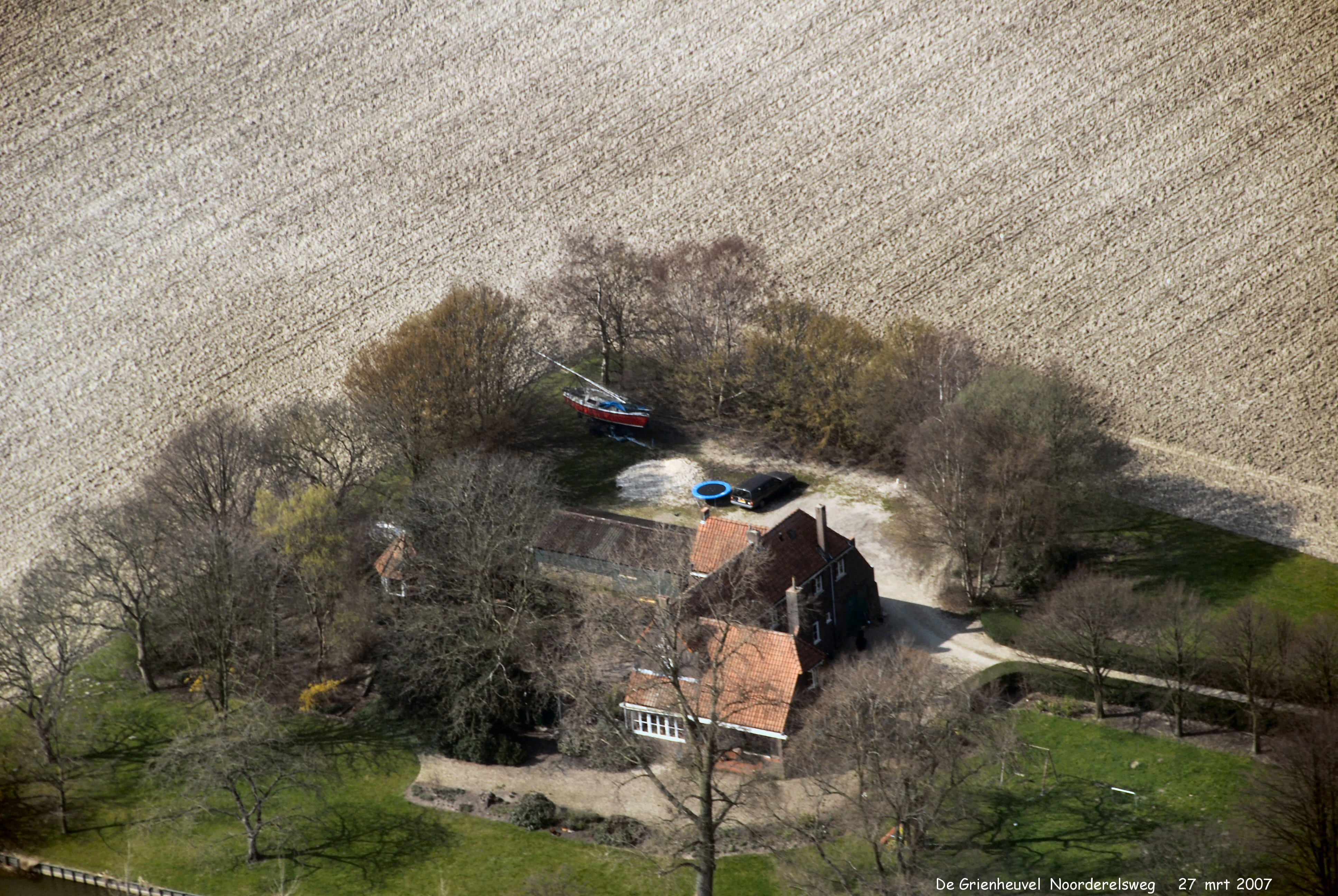 Dordtse Biesbosch met Hoeve "De Griendheuvel" aan de Noorderelsweg. gezien in Noord/Westelijke richting.