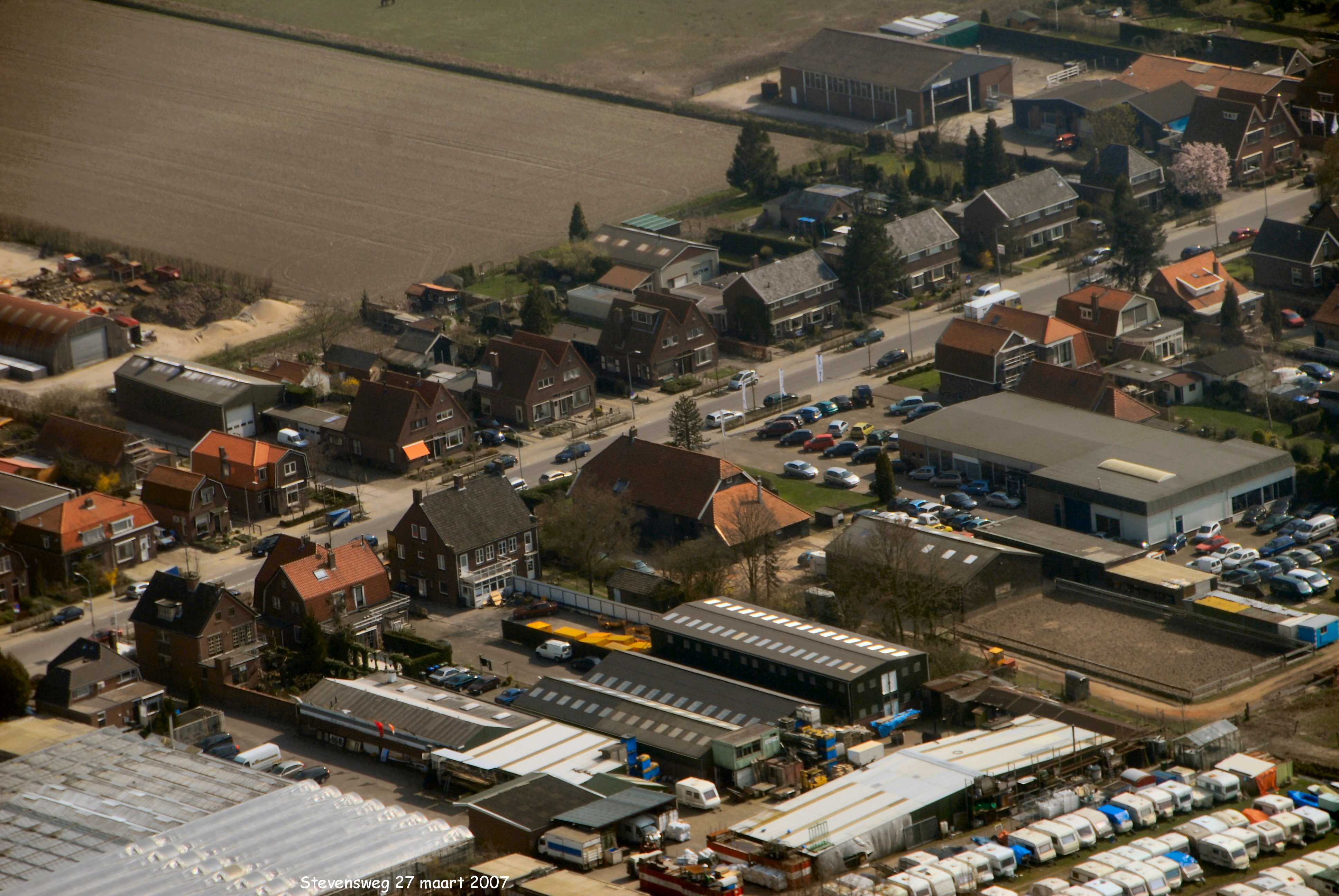 Stevensweg met links onder de inmiddels verdwenen tuincentrum "De Staartploeg" gezien in Zuid/Oostelijke richting.