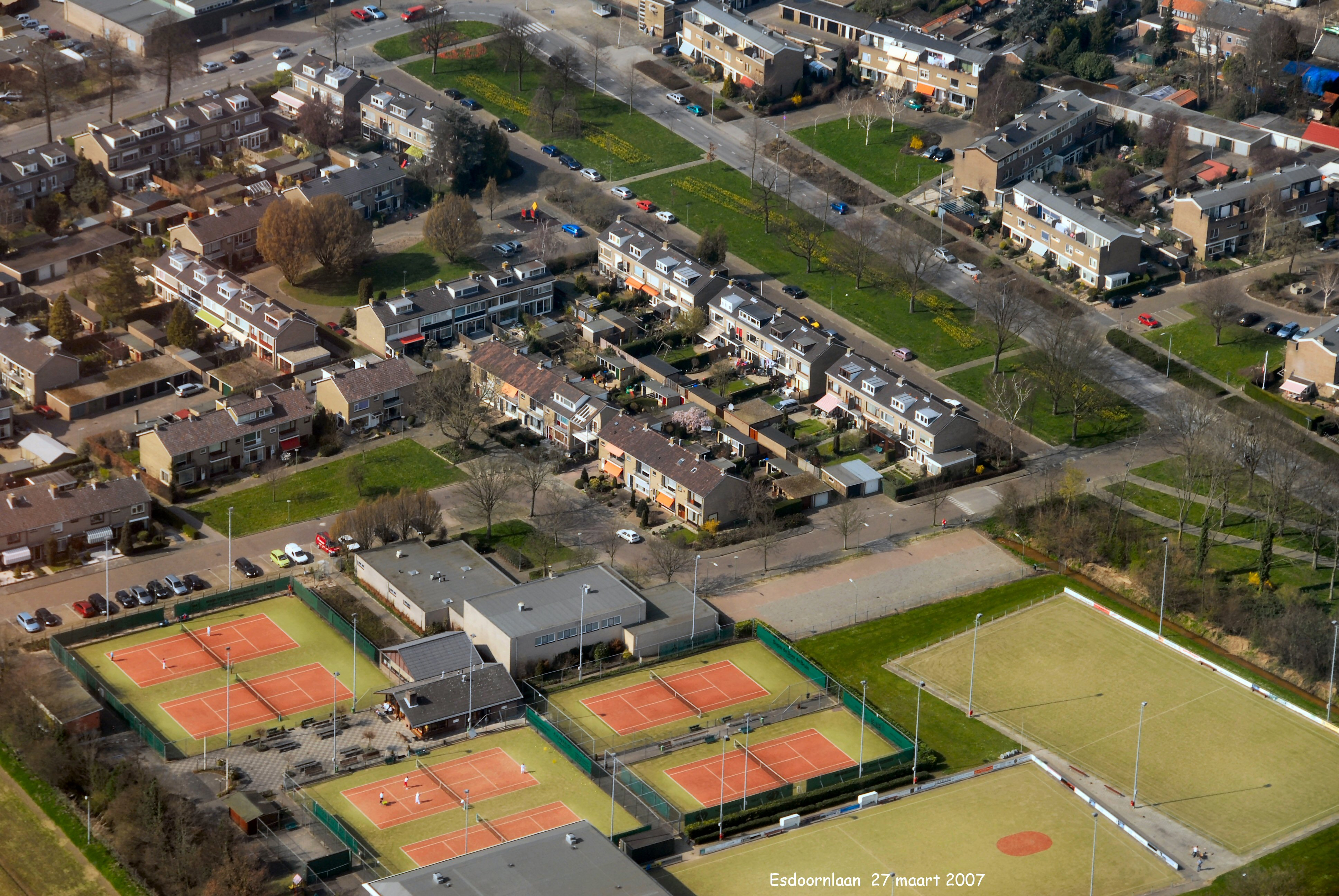 Rechts onder Sporting "Delta" Links onder Tennisver. Dubbeldam aan de Esdoornlaan. Mid/rechts naar boven is de Dubbelsteynlaan Oost. Links boven is de Elzenlaan gezien in Noord/Westelijke richting.