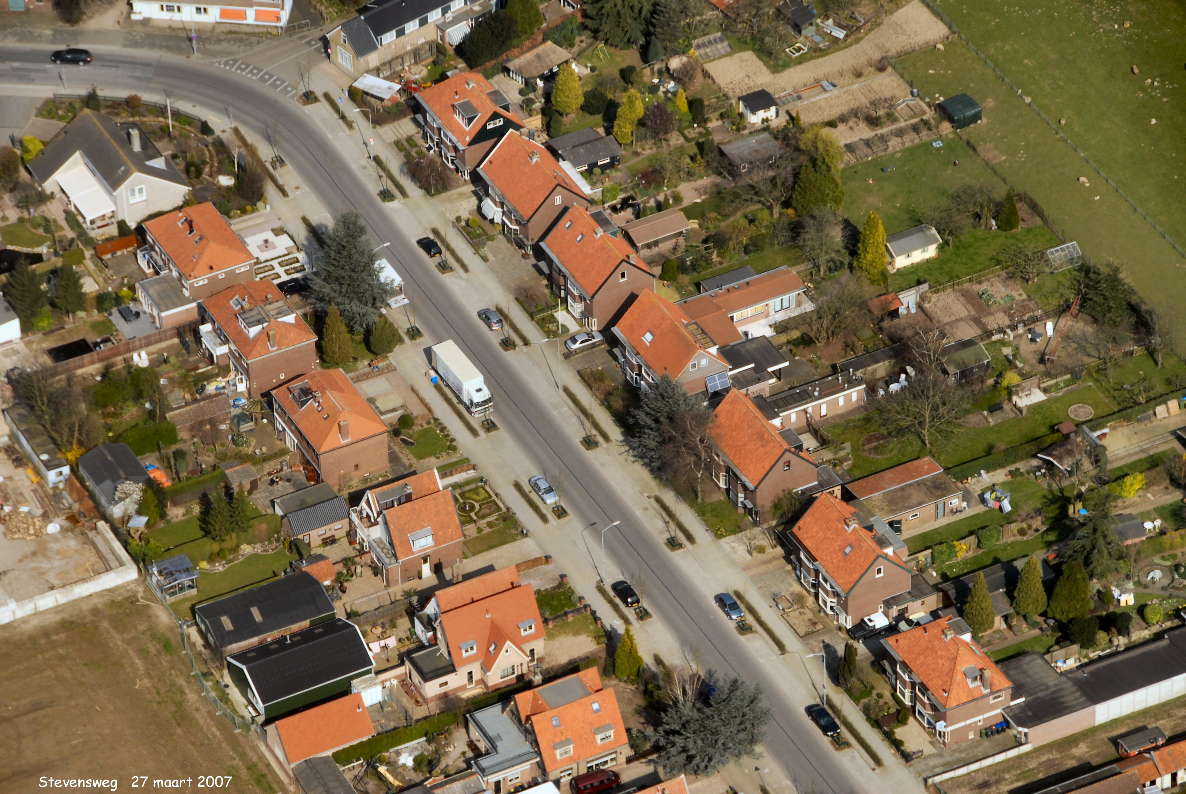 Stevensweg met boven de Oudendijk gezien in Noord/Oostelijke richting.