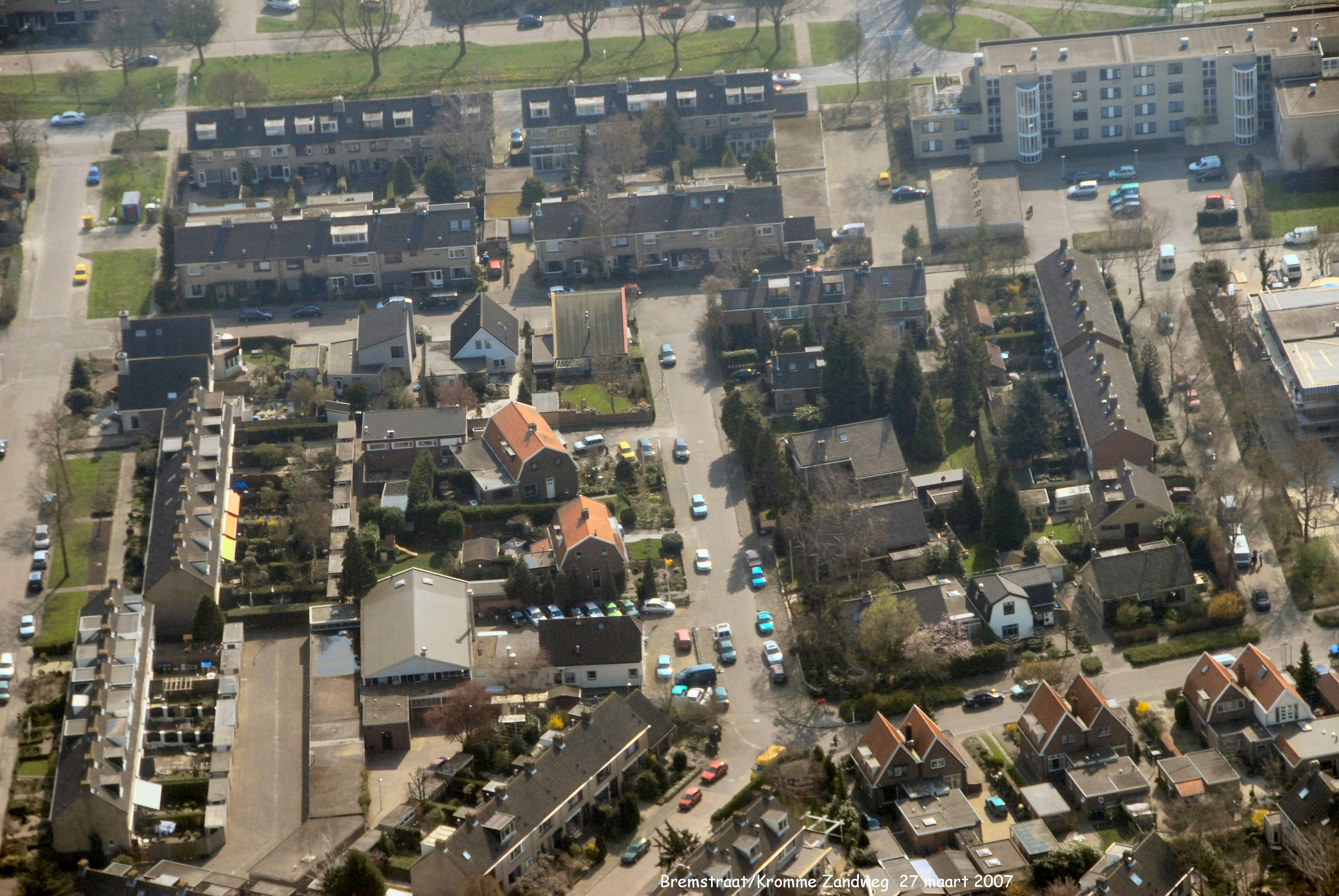 Boven is de Dubbelsteynlaan Oost. Links is de Jasmijnstraat. Midden links naar rechts is de Meidoornlaan. Rechts onder is de Kromme Zandweg. gezien in Zuidelijke richting.
