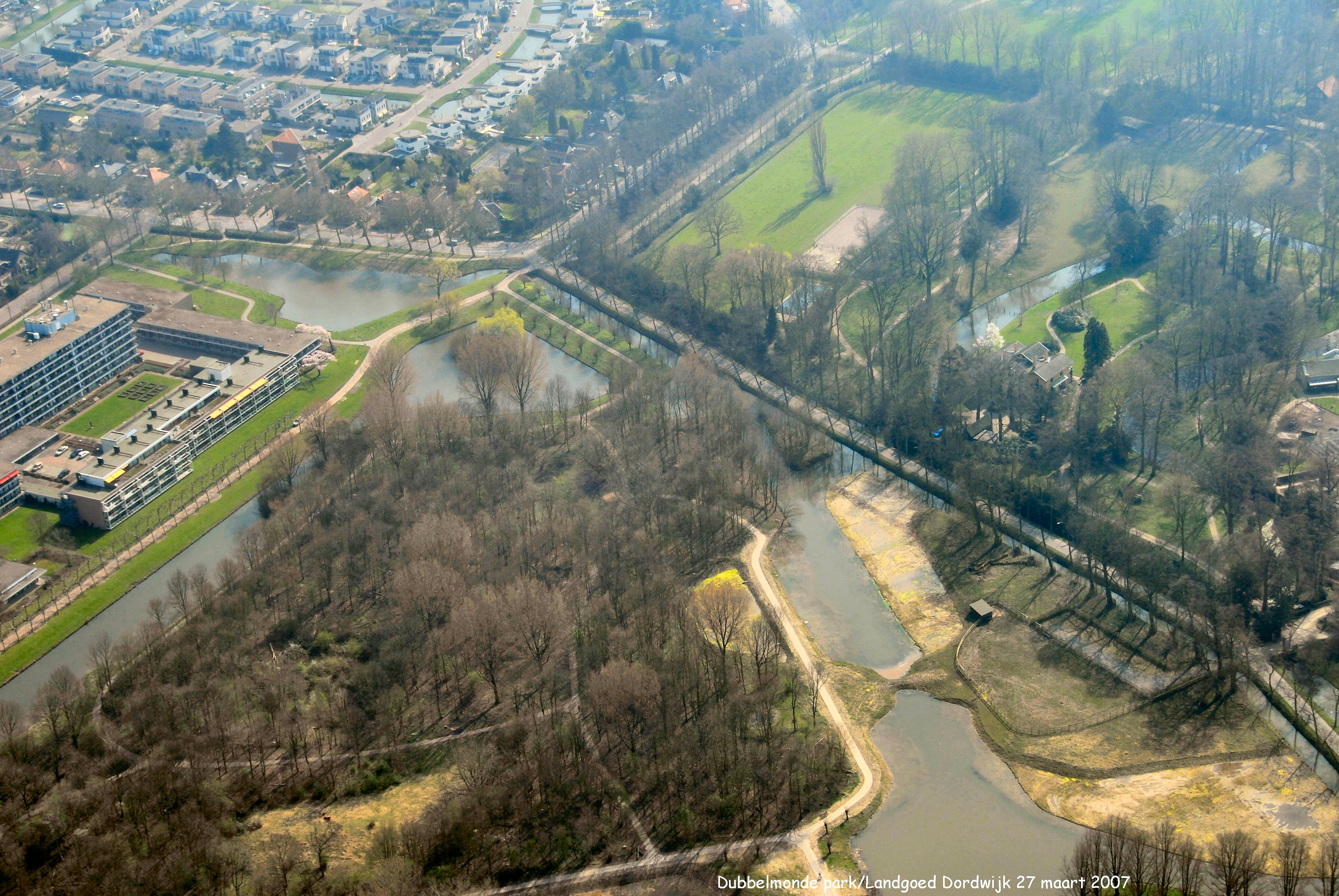 Rechts boven is Landgoed Dordtwijk. Onder Dubbelmonde Park. Links "Dubbelmonde" Links boven is het Beelaertspark. gezien in Zuid/oostelijke richting.