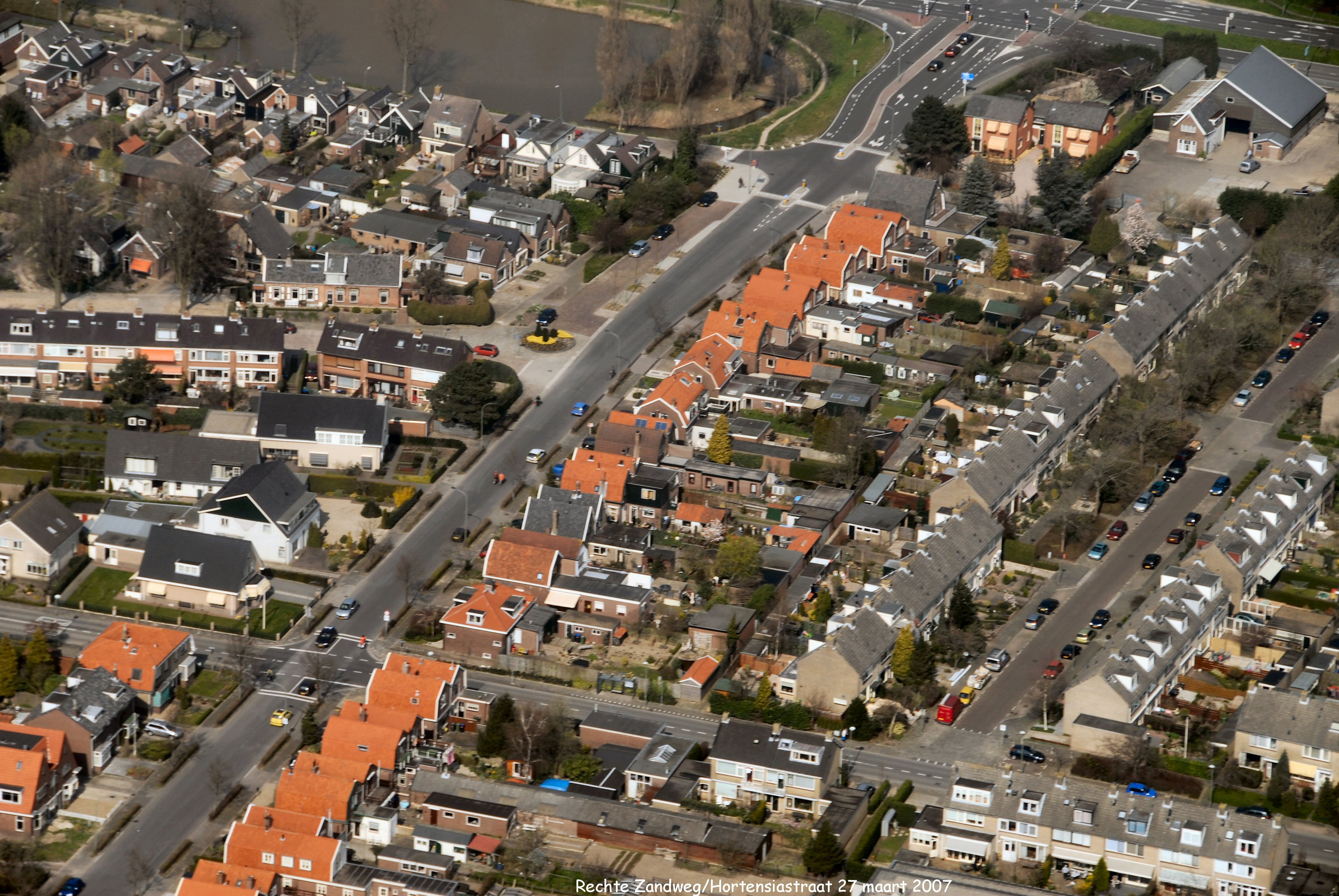 Links onder naar boven is de Rechte Zandweg. Links boven naar rechts is de Haaswijkweg West overgaand in Oost. Rechts onder naar links is de Prunuslaan. rechts boven de Provincialeweg. gezien in Noord/Westelijke richting.
