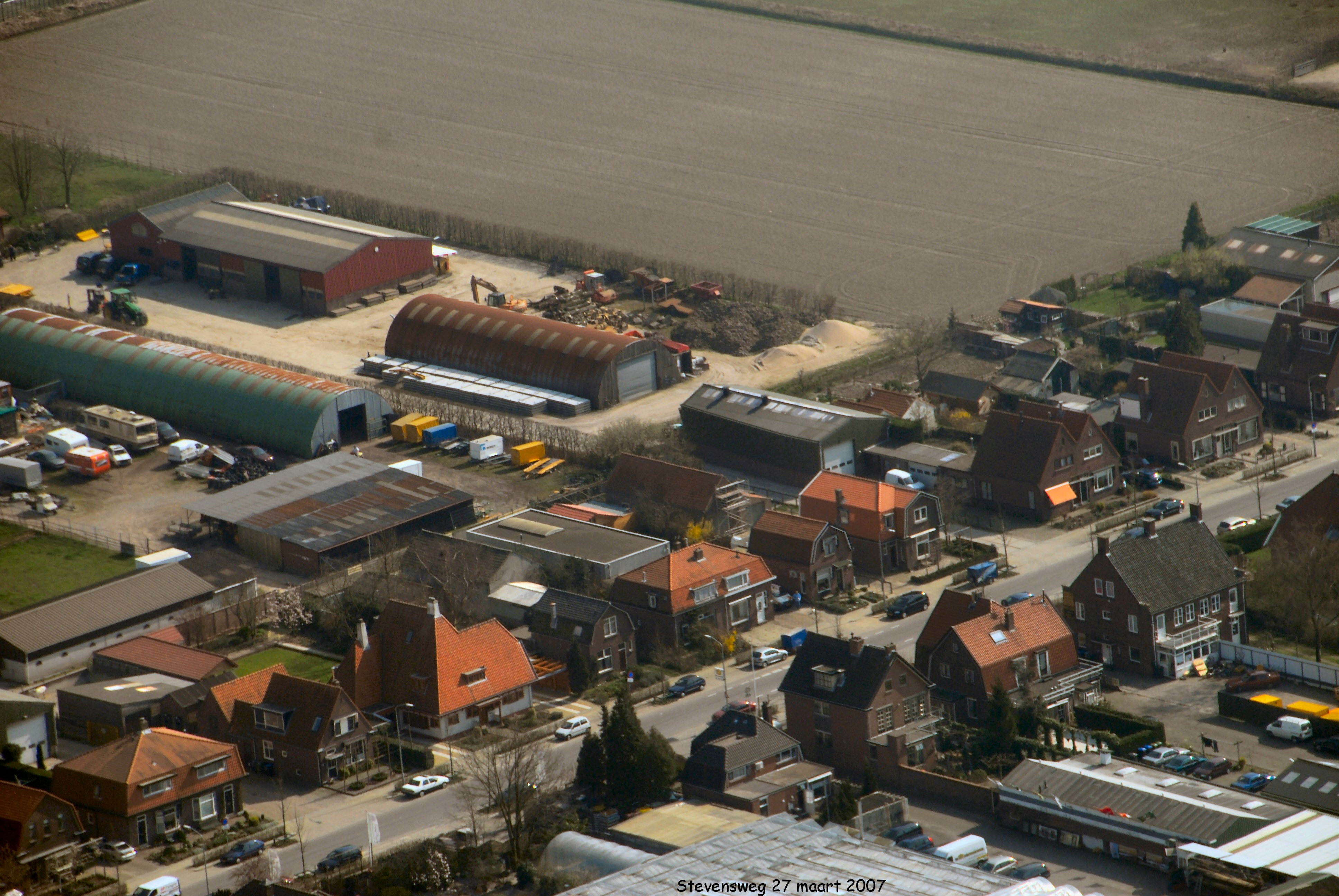 Stevensweg met links boven grondverzet bedrijf Van Damme gezien in Zuid/oostelijke richting.