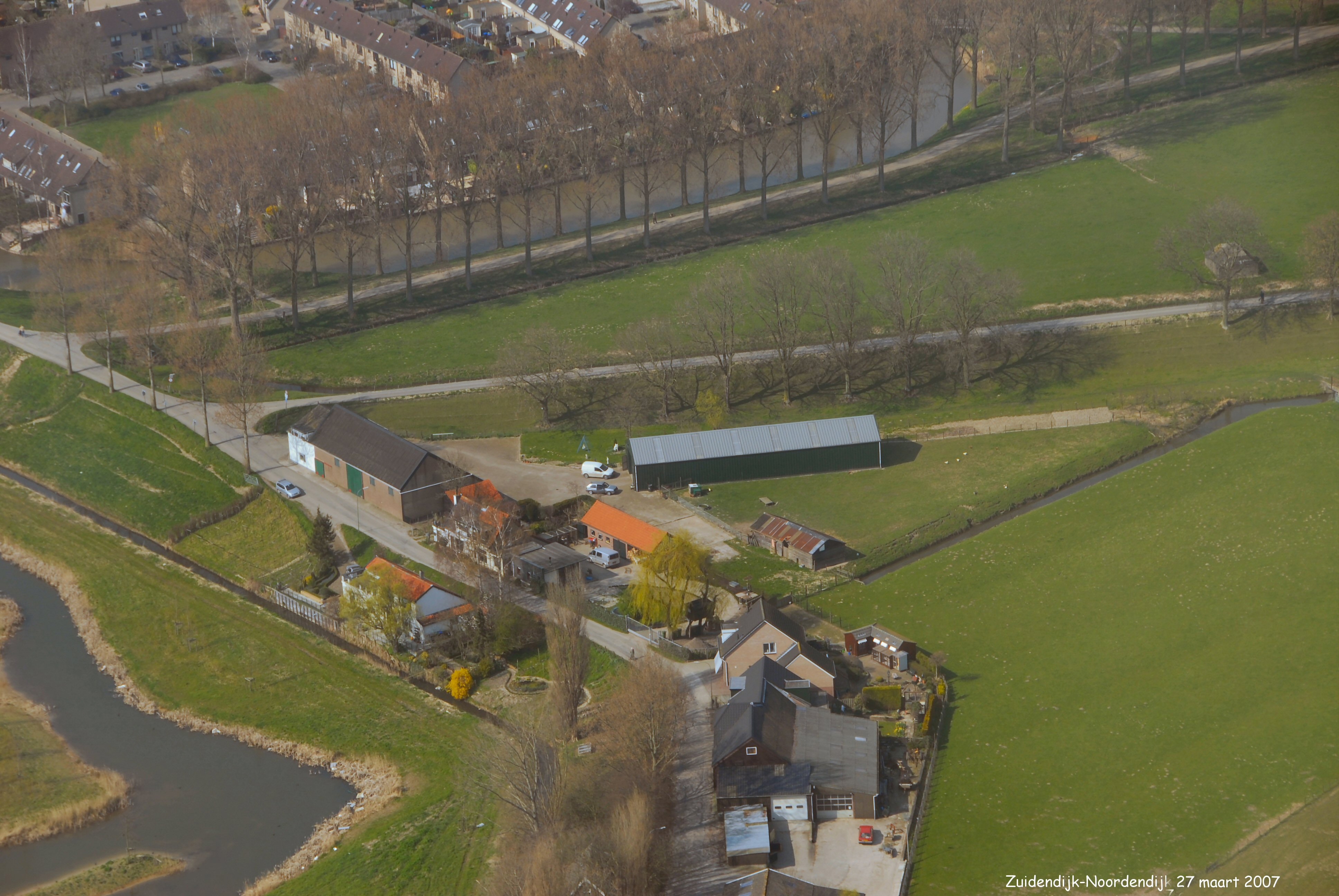 Bovenhoek met links onder de Zuidendijk overgaand in Noordendijk. Boven nog een stukje Stadspolder met de Bildersteeg Rechts boven naar links is de Zeedijk gezien in Noord/Westelijke richting.