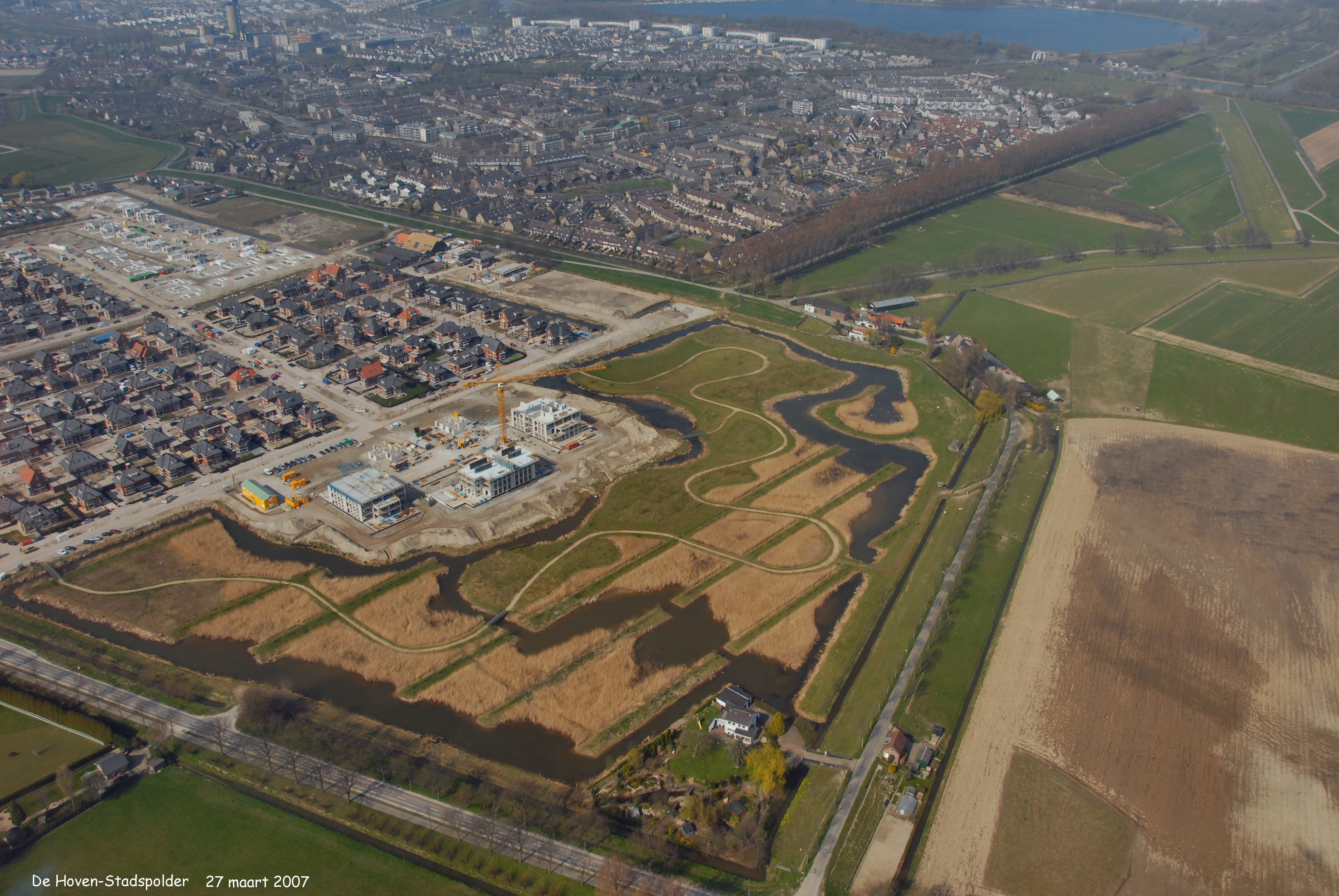 Links onder is de Prov.weg met nieuwbouw "De Hoven" er boven. Boven is de Stadspolder. mid.onder naar boven is de Zuidendijk.