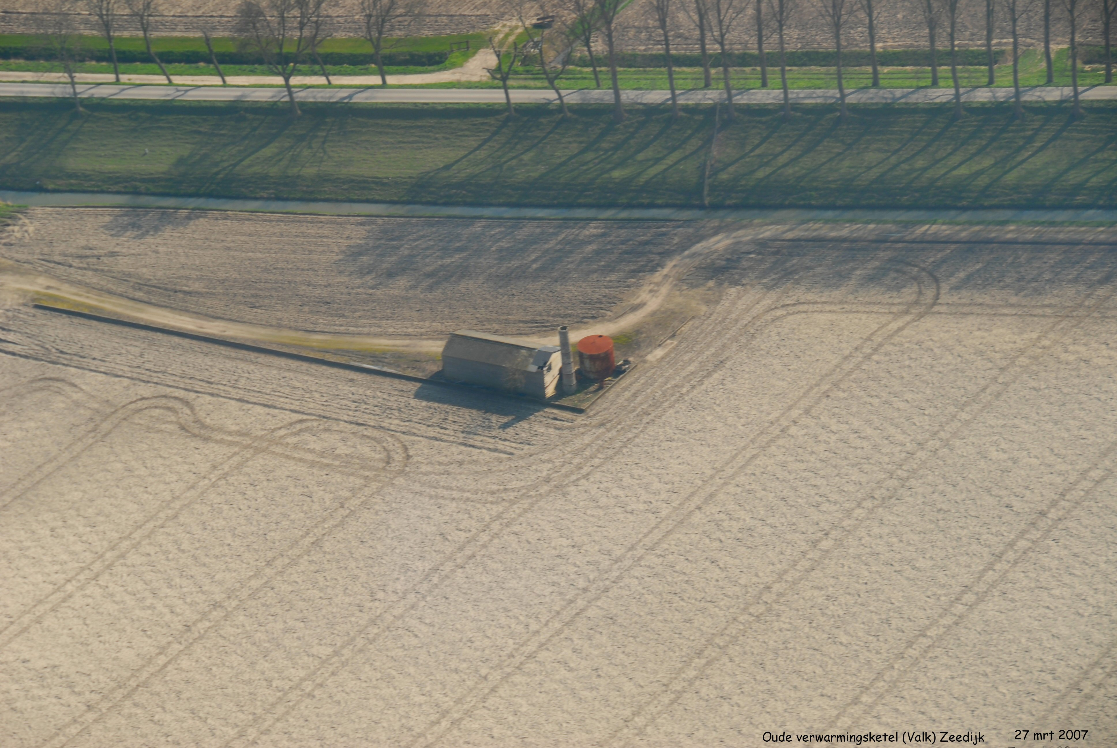 Zeedijk met onder de Zuidpolder en boven de Haniapolder. In het midden oud ketelhuis van Valk. gezien in Zuidelijke richting.
