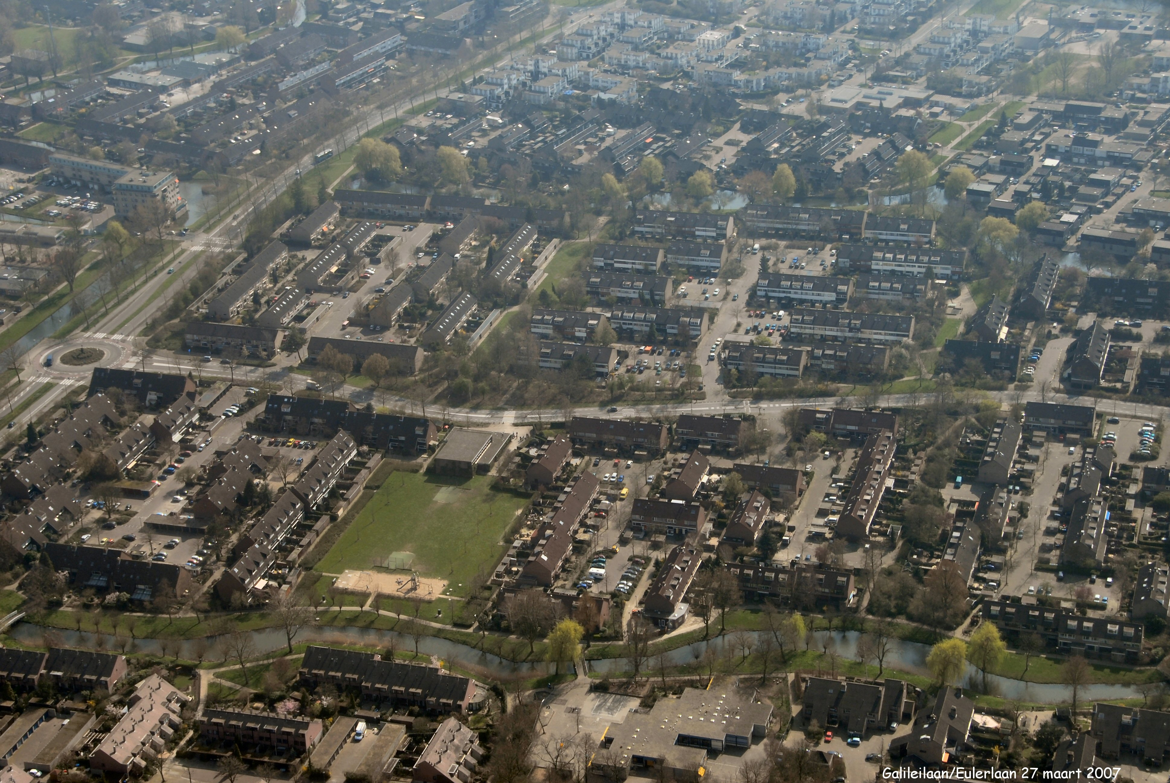 Mid.links naar boven is de Galileilaan. Mid.link naar rechts is de Eulerlaan gezien in Zuidelijke richting.