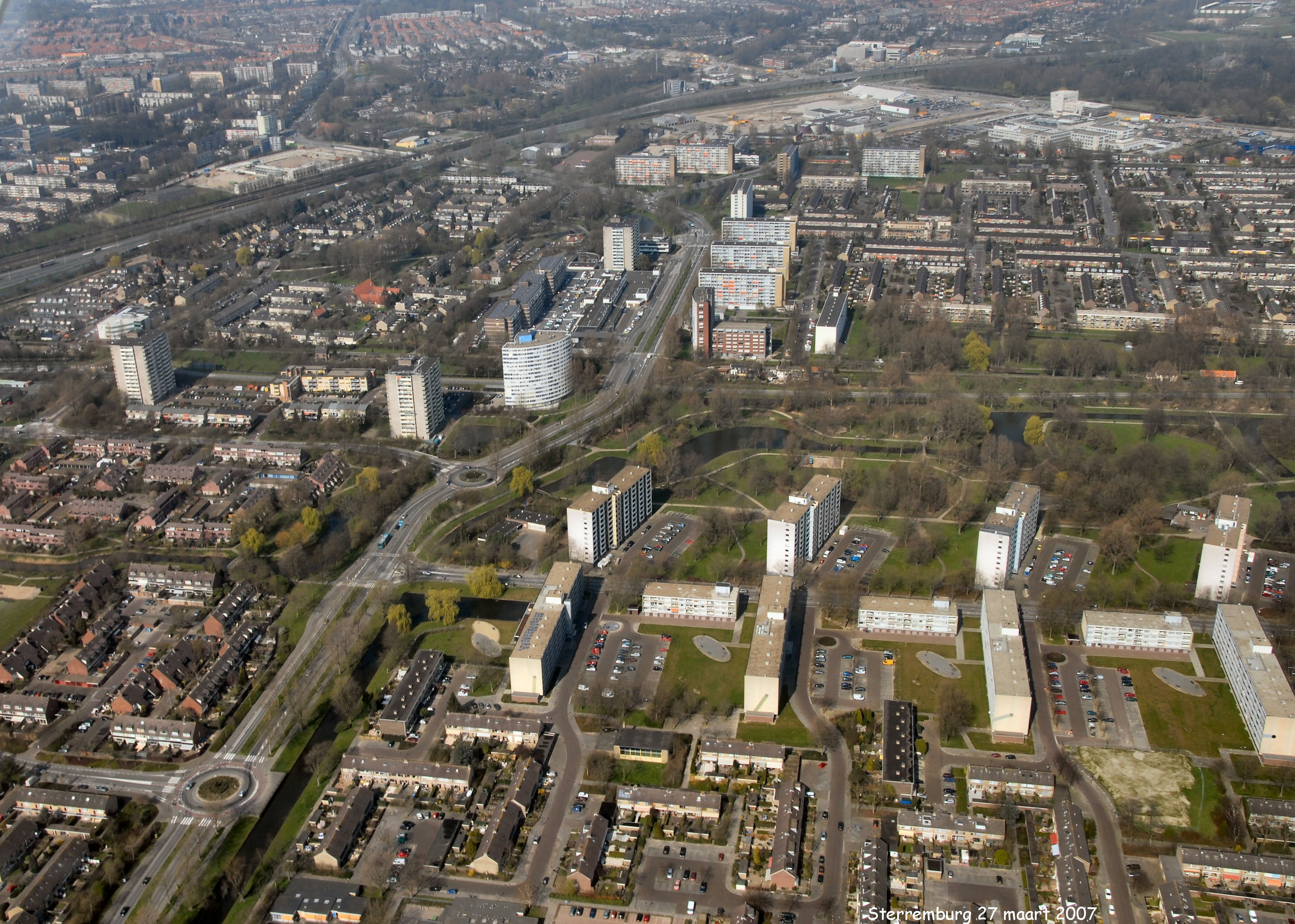 Mid.rechts naar links is de Blauwweg.met de Zuidendijk er boven. Rechts boven is de Rondweg.links onder naar boven is de Galileilaan. gezien in Noordelijke richting.