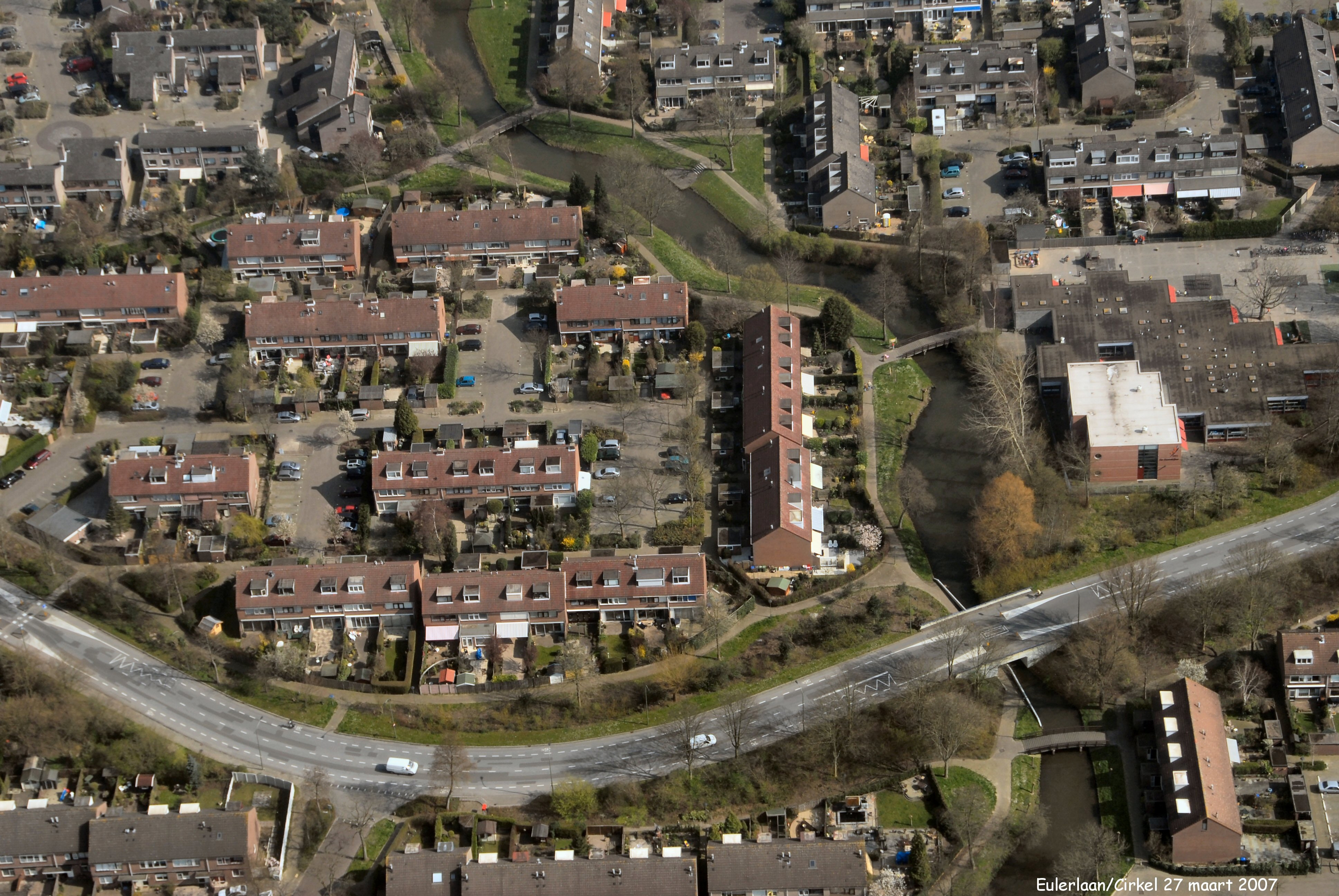 Onder is de Eulerlaan met Cirkel in het midden. Rechts met wit dak is IKC de Sterrekijker. Rechts boven is Boogschutter met links boven de Driehoek gezien in oostelijke richting.