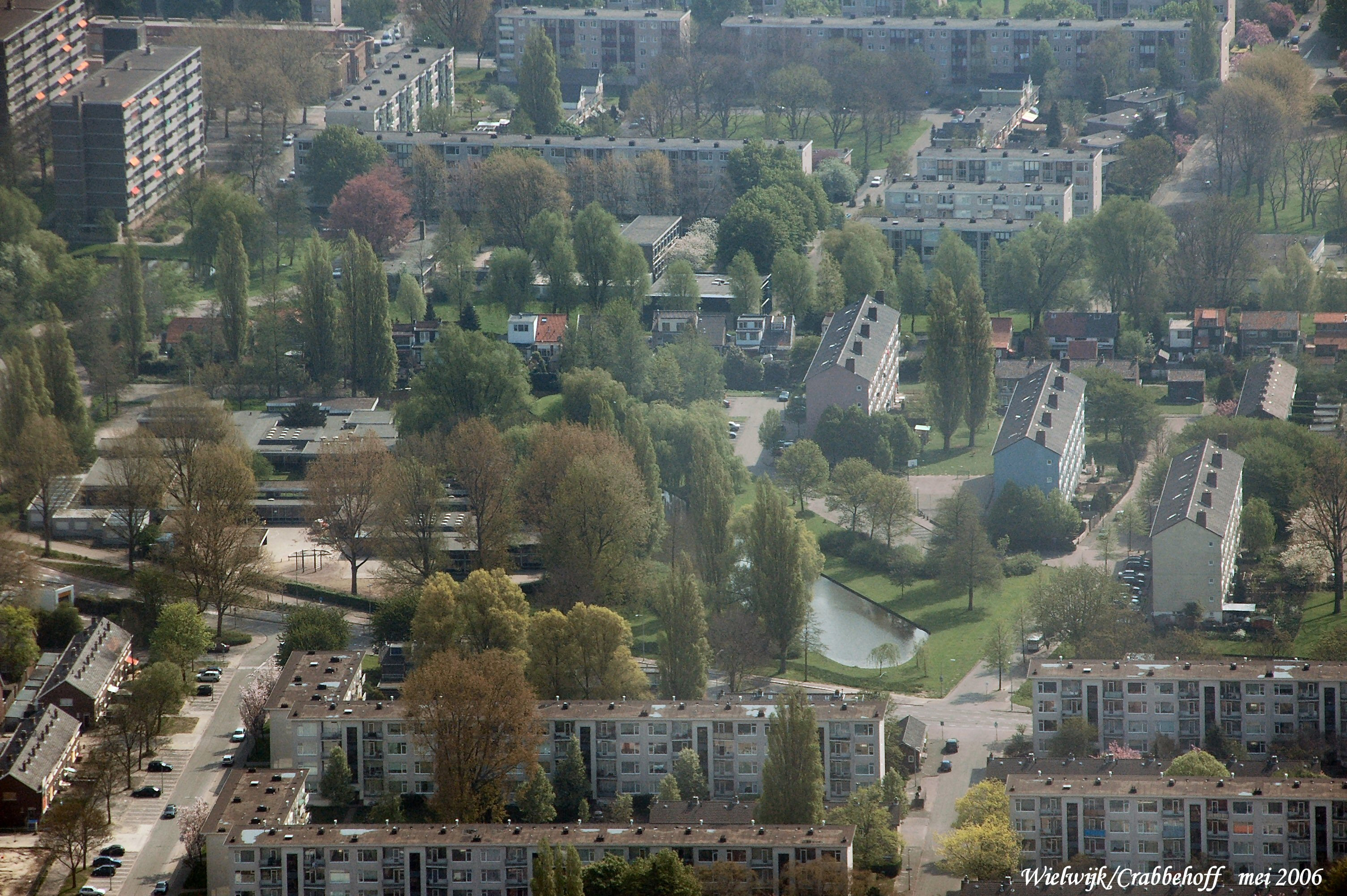 Onder is Wielwijk met Crabbehoff bovenin met de Zuidendijk er tussen.Mid.links naar rechts is de Karel Doormanstraat. gezien in Oostelijke richting.