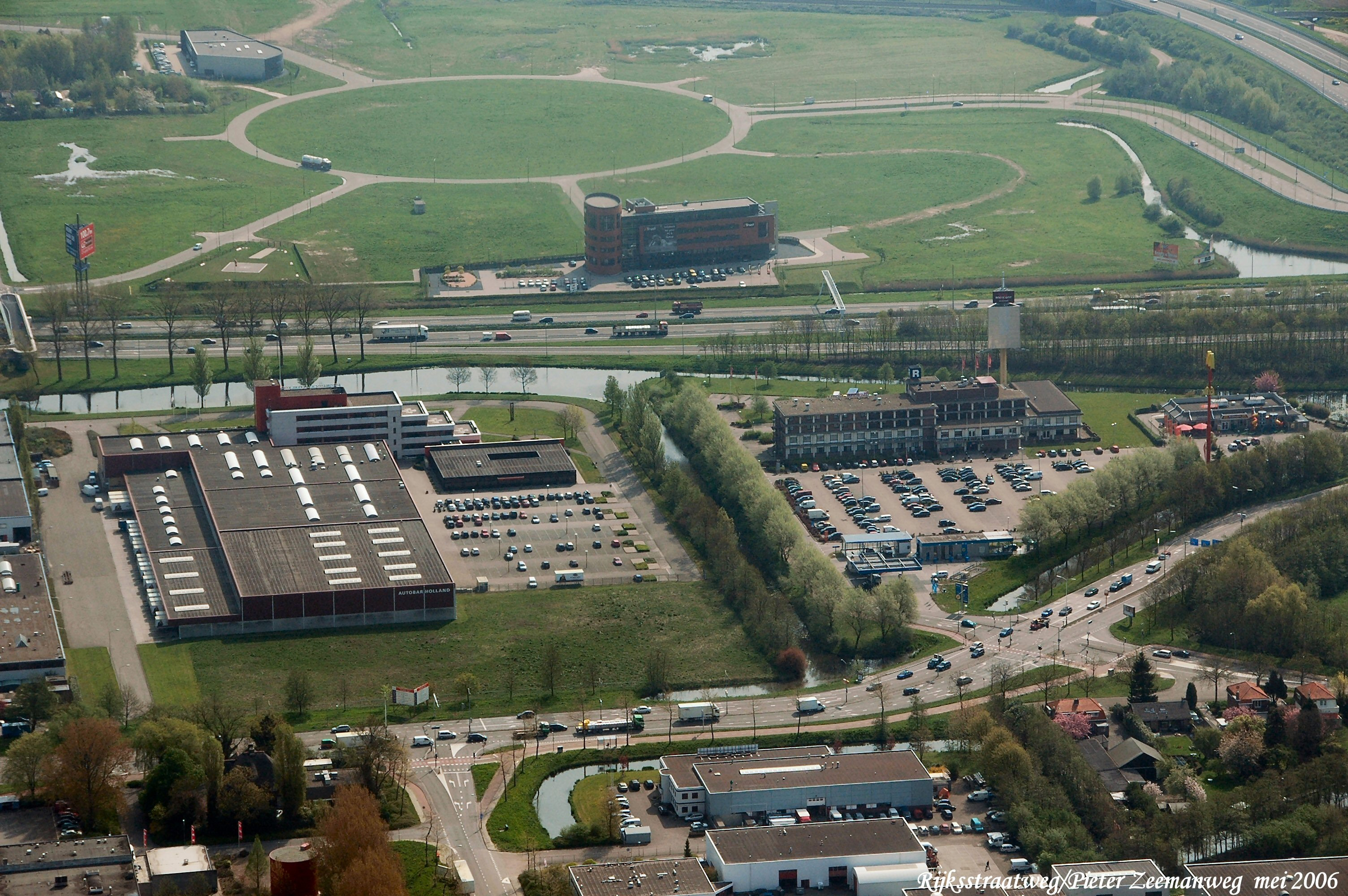 Mid.links naar rechts is de Rijksstraatweg met boven de Laan van Londen. Onder is de Pieter Zeemanweg met rechts boven nog een stukje van de Rondweg (N3). gezien in Oostelijke richting.