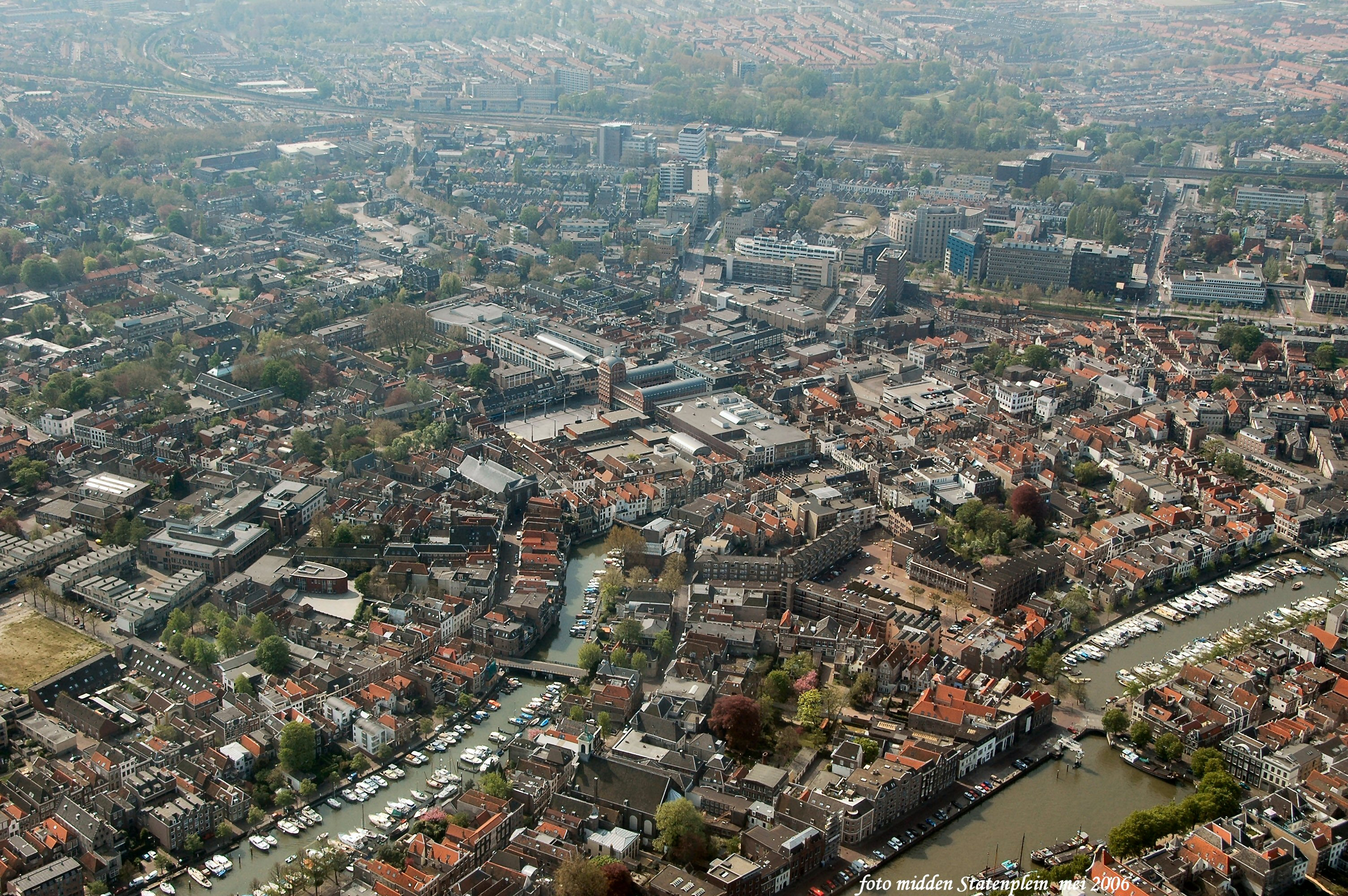 Centrum Dordrecht met het Statenplein in het midden, gezien in Zuid/oostelijke richting.