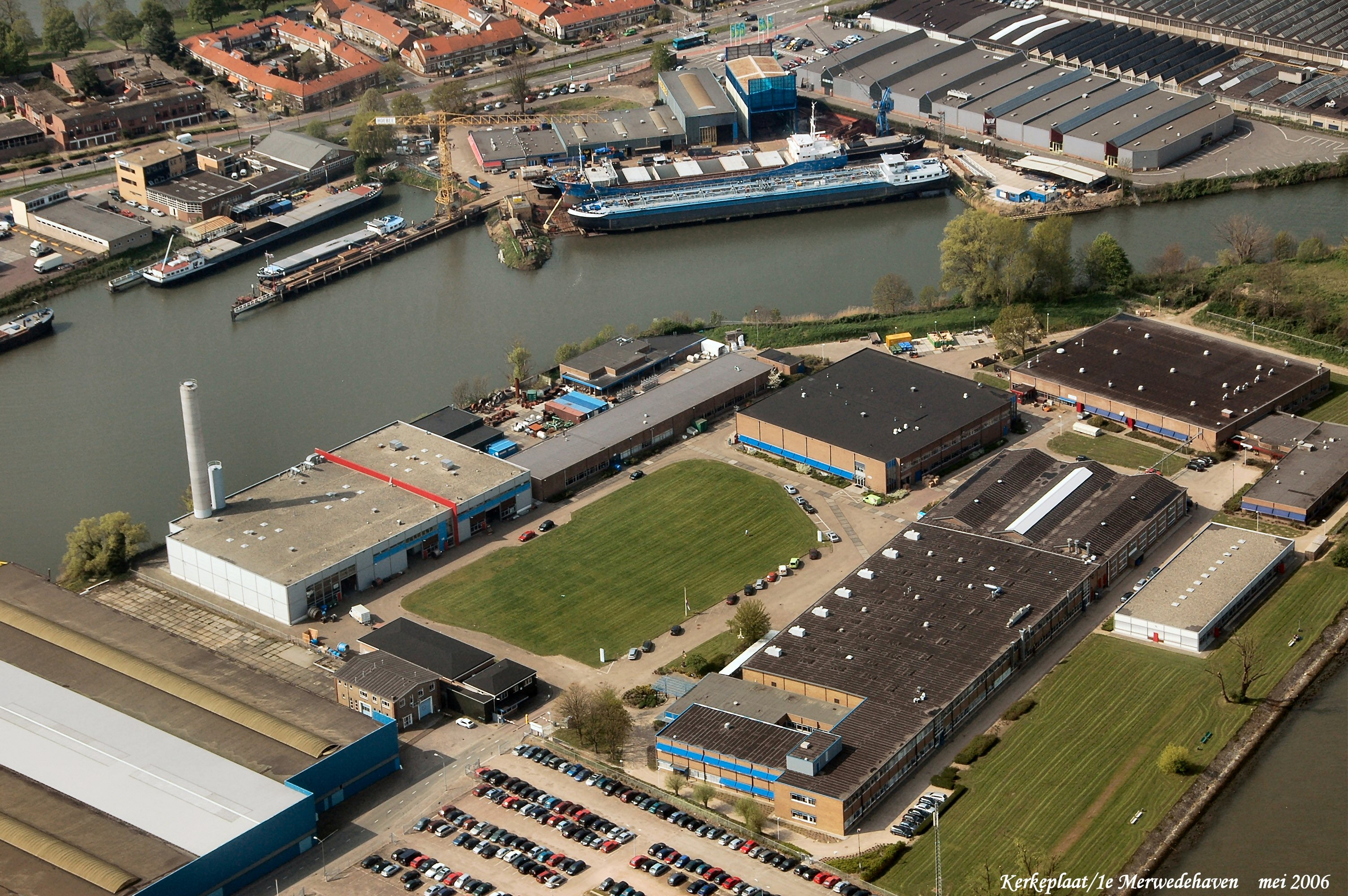 1e Merwedehaven met onder de Kerkeplaat en boven de Staart gezien in Zuidelijke richting.