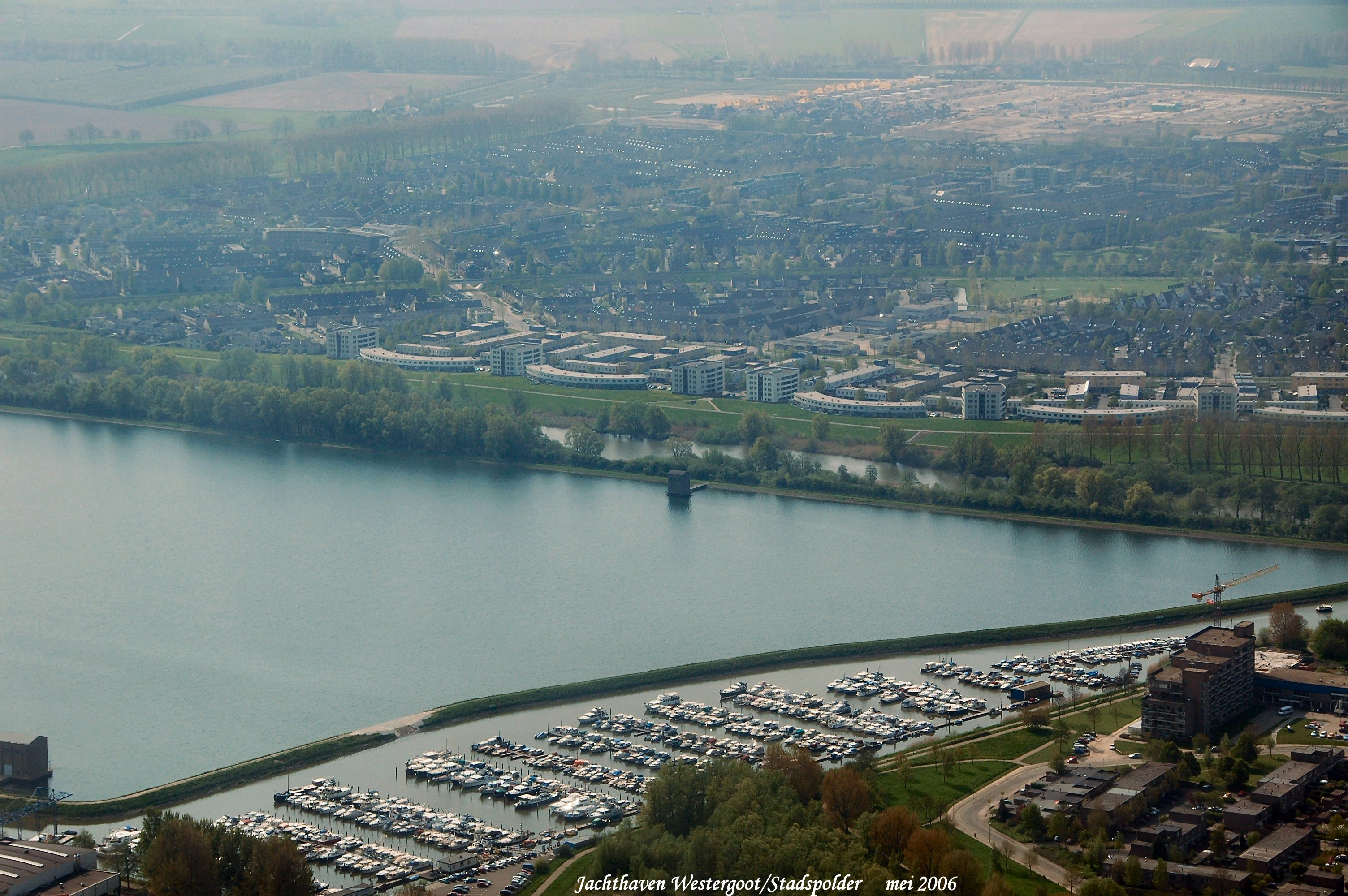Jachthaven Westergoot met links waterbekken "Grote Rug" Boven is de Stadspolder gezien in Zuid/Oostelijke richting.