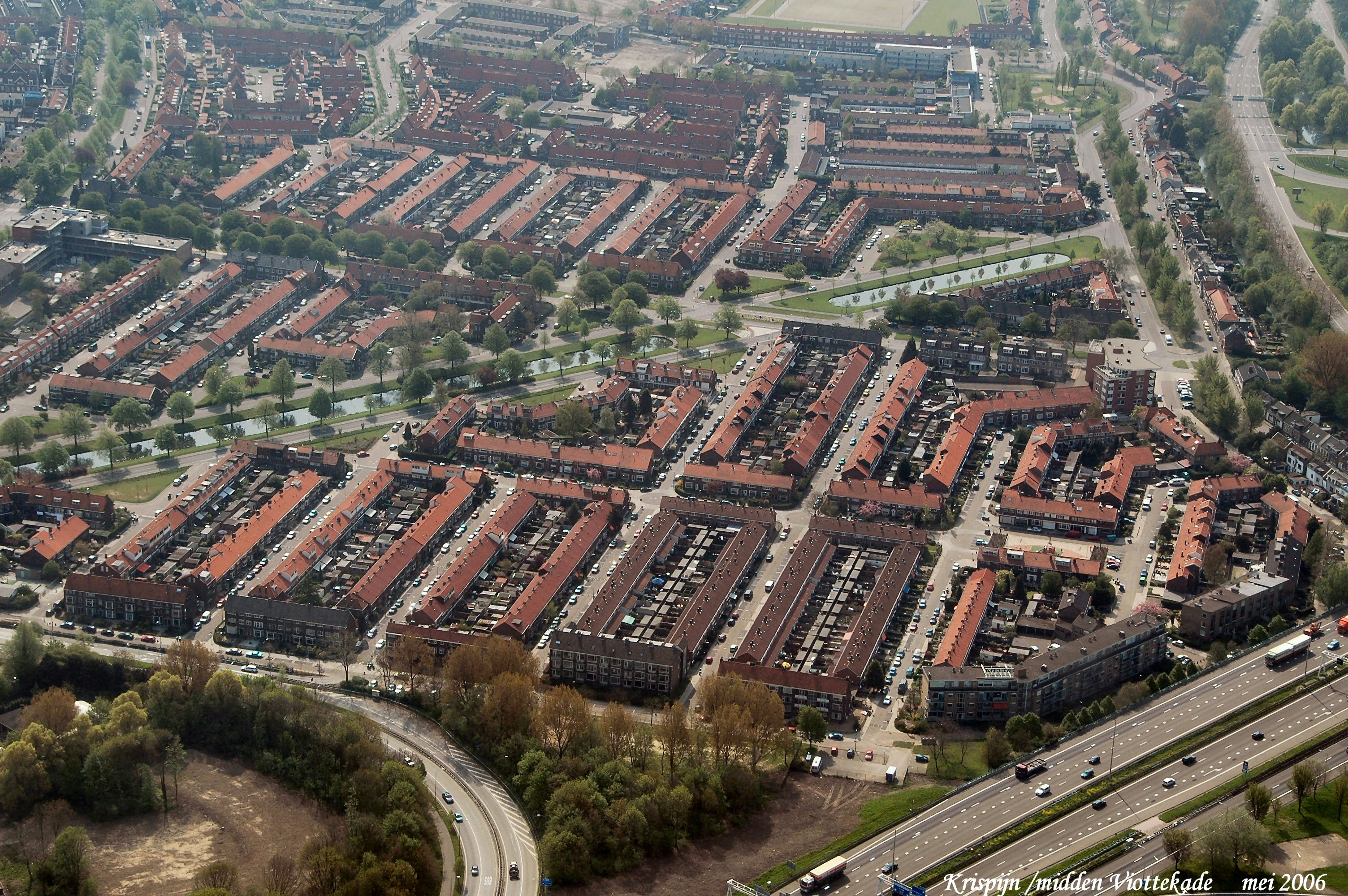 Krispijn met In het midden de Viottekade en rechts boven de Zuidendijk. rechts onder is de A16 met links onder de afrit van de Zwijndrechtse brug. gezien in Zuid/Oostelijke richting.