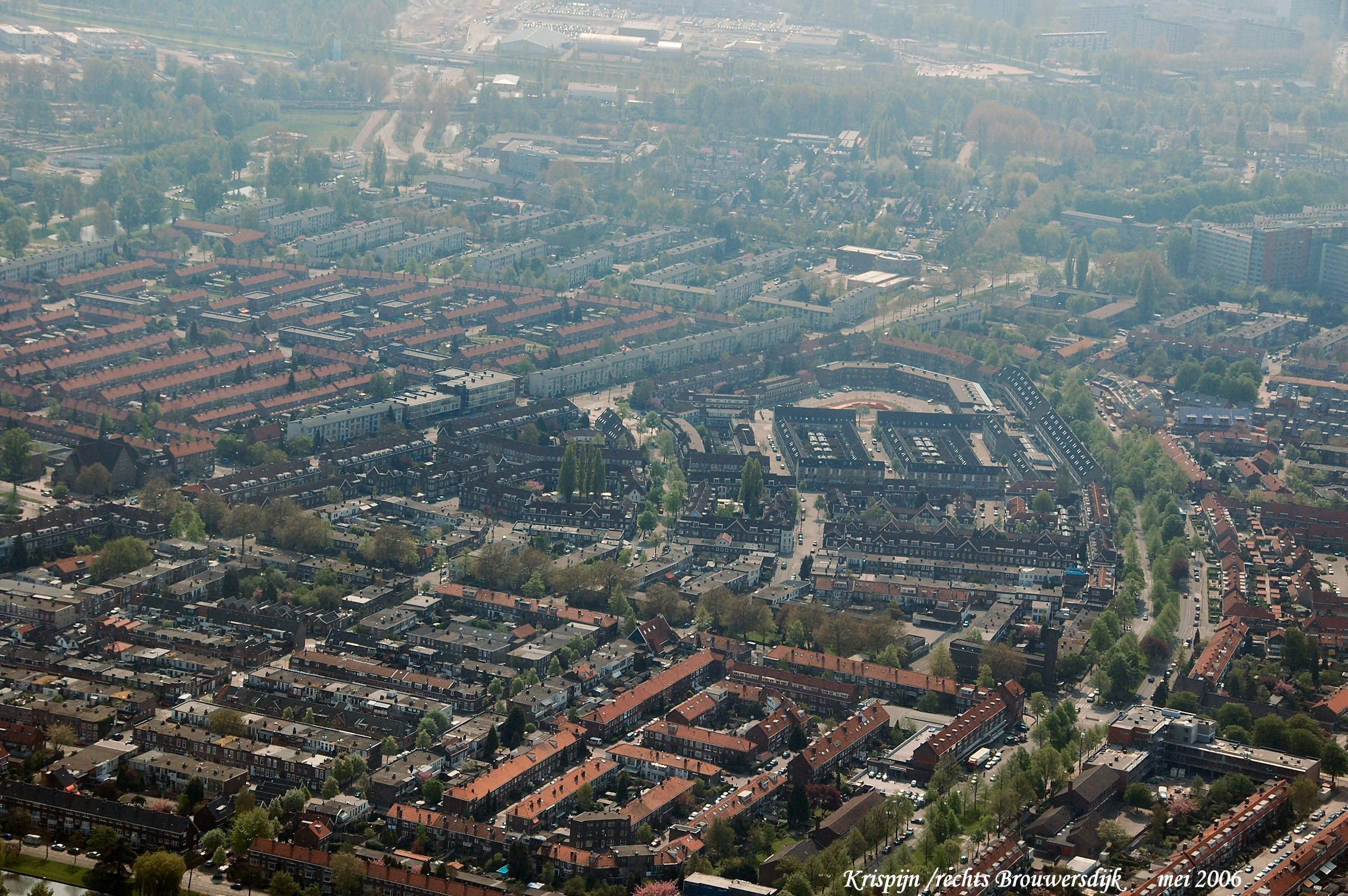 Krispijn met rechts de Brouwersdijk. Mid.links naar rechts boven is de Krispijnseweg. gezien in Zuid/oostelijke richting.