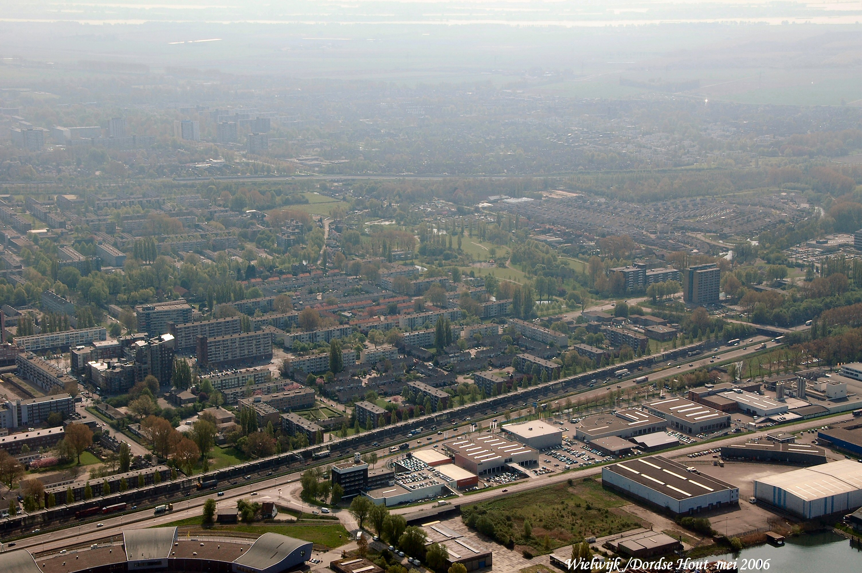 Wielwijk met de A16 onder. Mid.rechts is Dordtse Hout gezien in Zuid/Oostelijke richting.