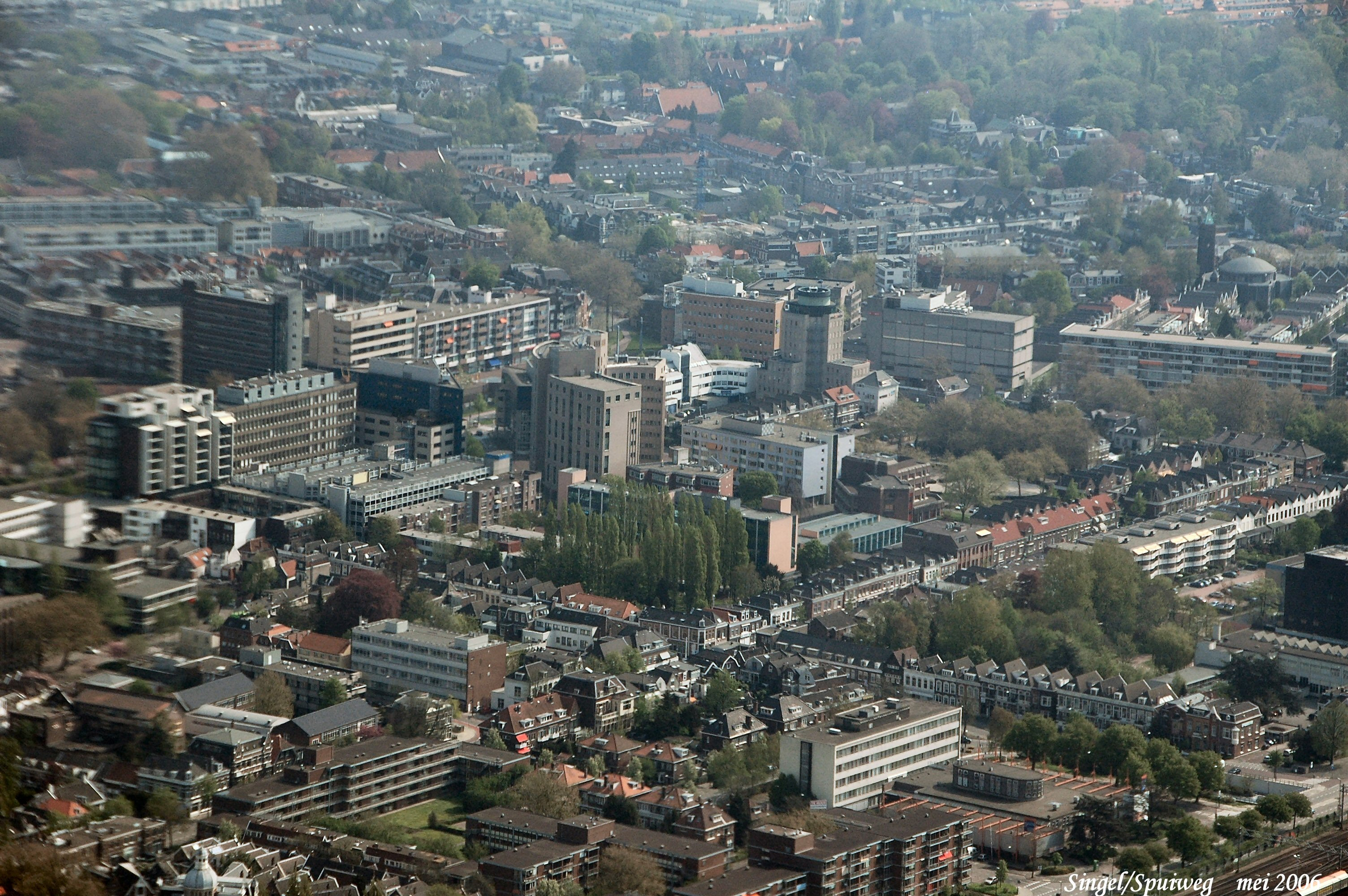 Centrum Dordrecht, Links onder naar rechts is de Singel gezien in Noord/Oostelijke richting.