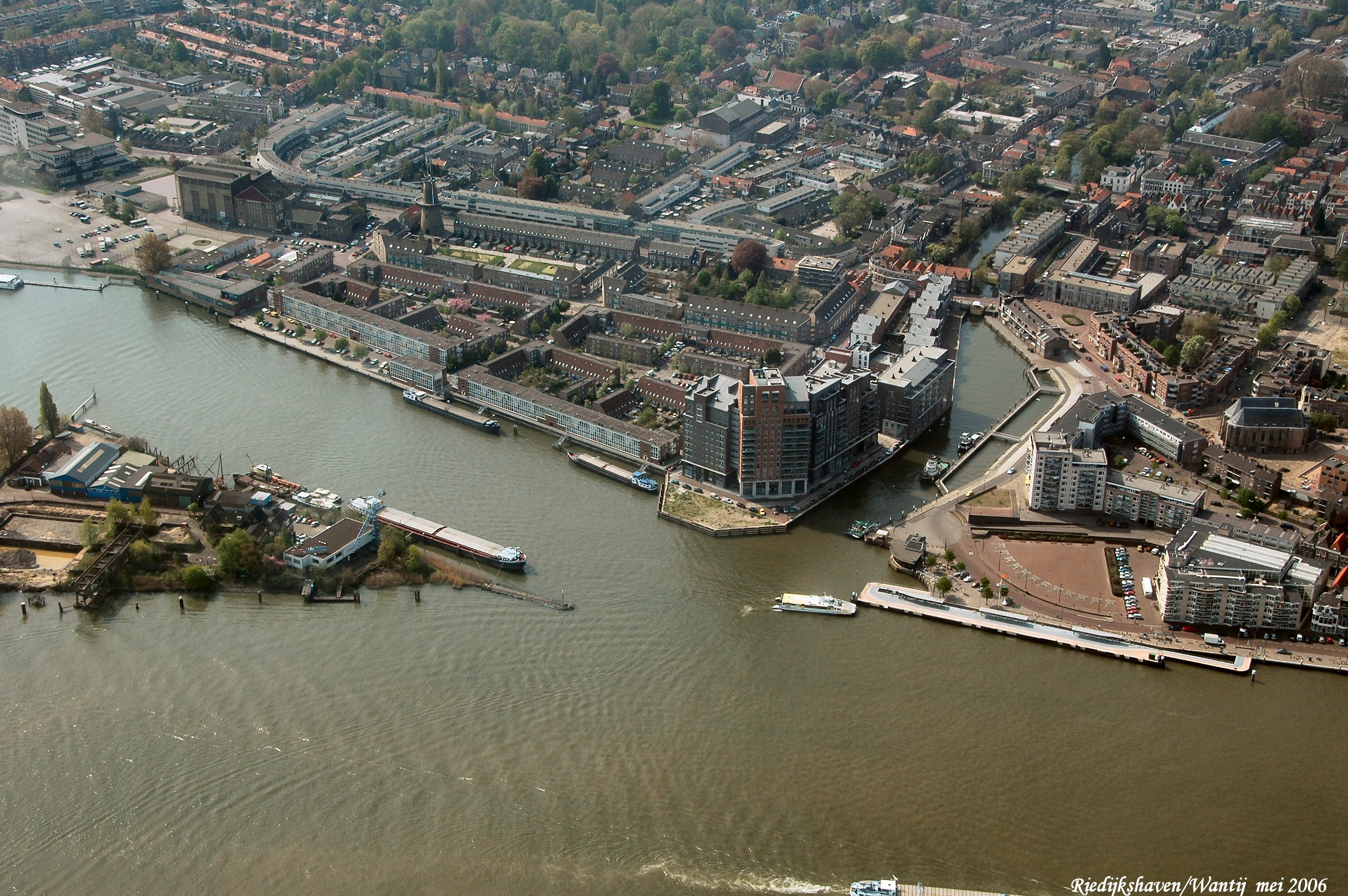 Links onder is de Beneden Merwede Mid.links het Wantij. in het midden de Riedijkshaven. mid.boven is Park Merwestein gezien Zuidelijke richting.
