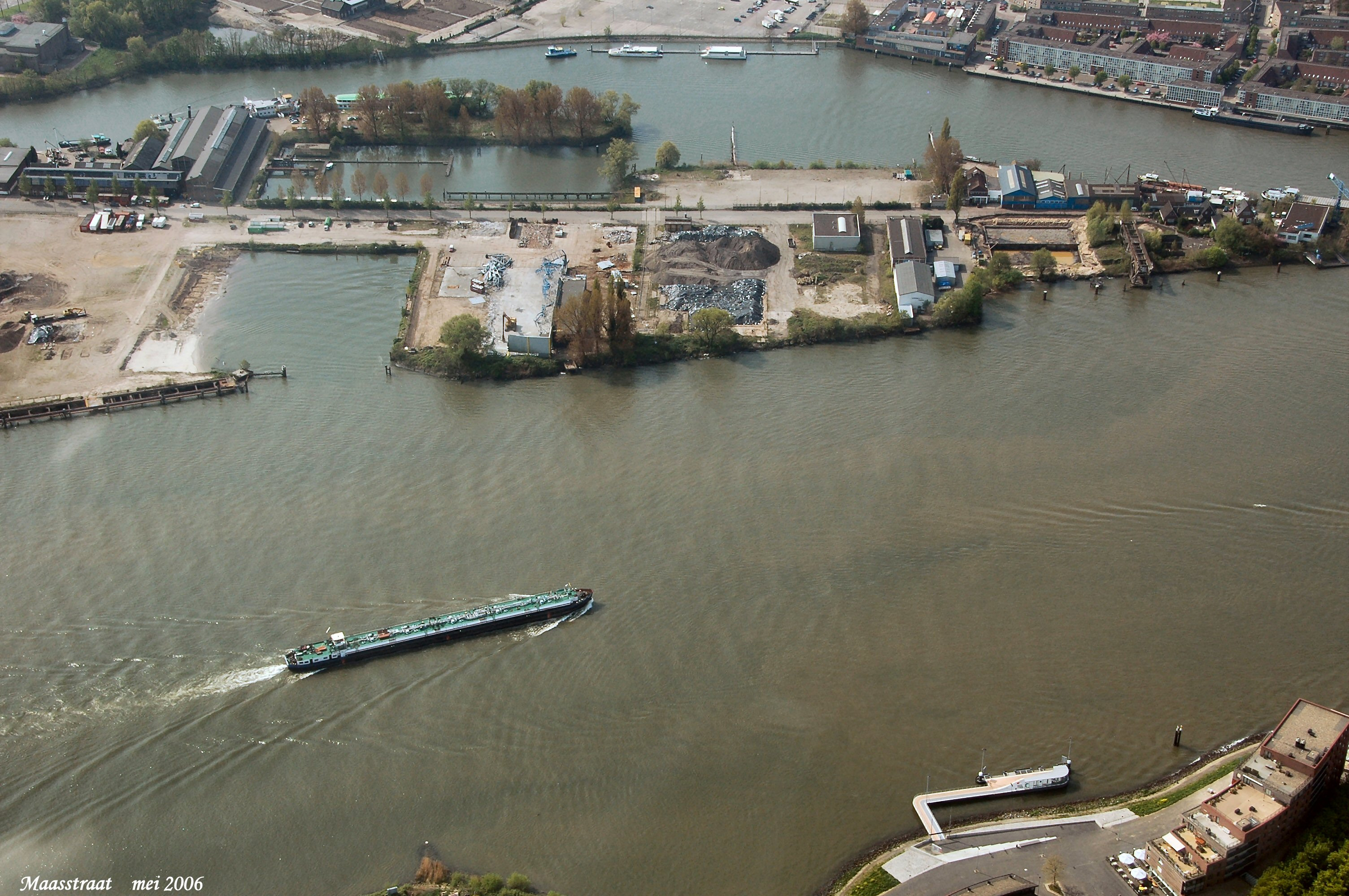 Onder is de Beneden Merwede met de Staart in het midden, boven is het Wantij, rechts onder nog een stukje van Merwehoofd in Papendrecht gezien in Zuidelijke richting.