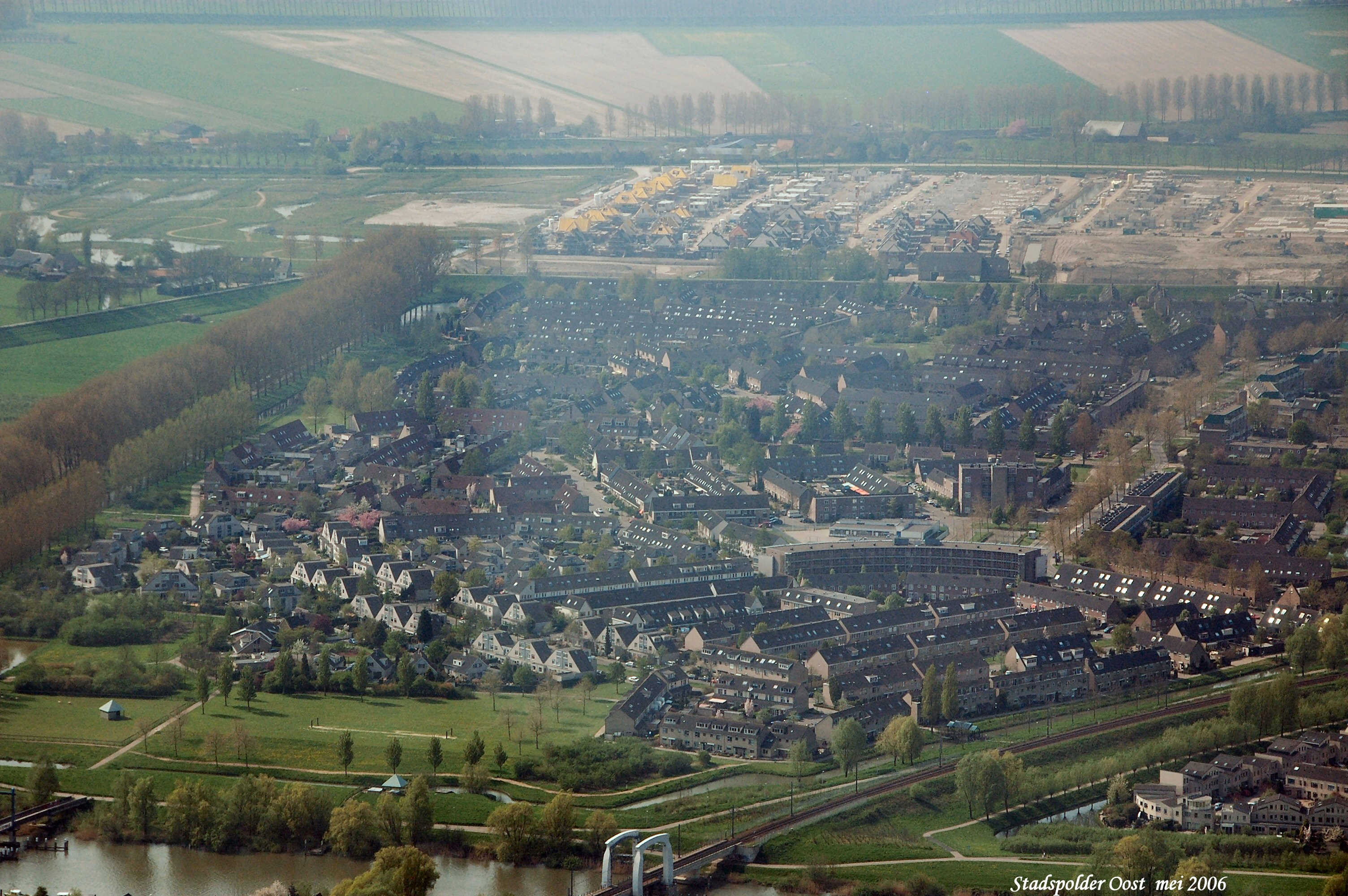 Stadspolder met links de Bildersteeg en onder het Wantij, boven is de Provincialeweg met start van de bouw "De Hoven" gezien in Zuid/Oostelijke richting.