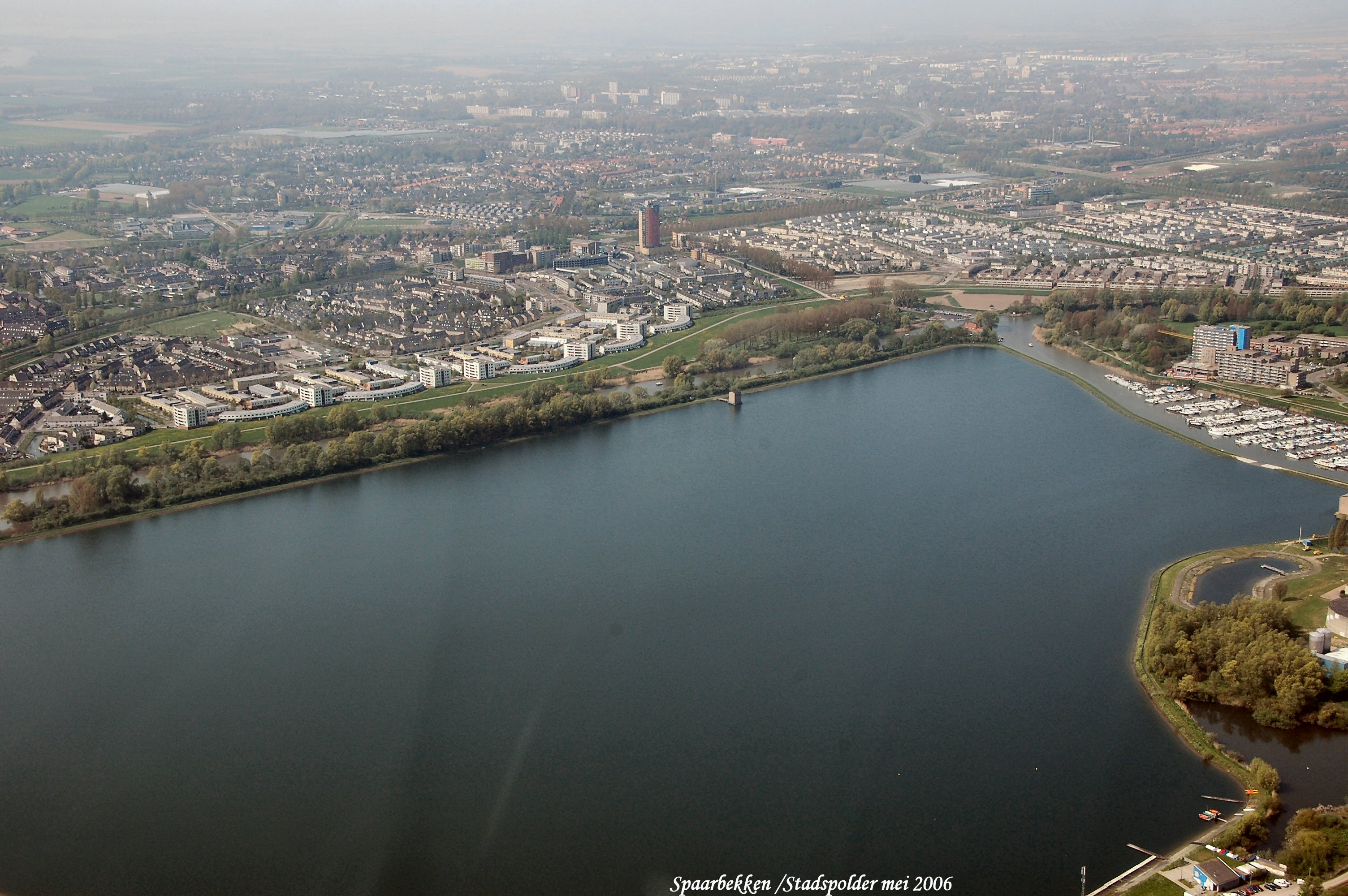 Spaarbekken "De Grote Rug" met mid.rechts jachthaven Westergoot. boven is Stadspolder. gezien in Zuid/westelijke richting.